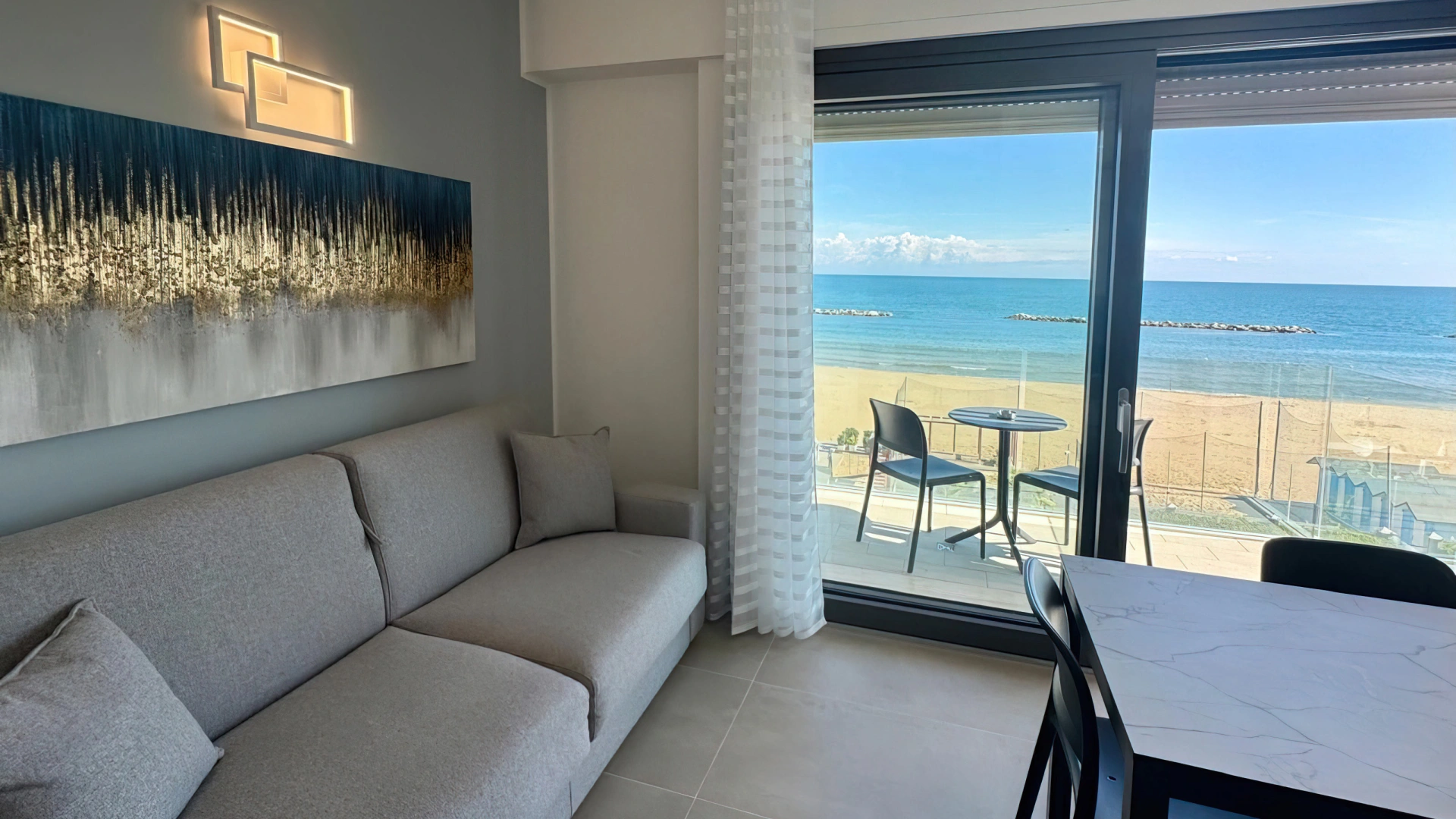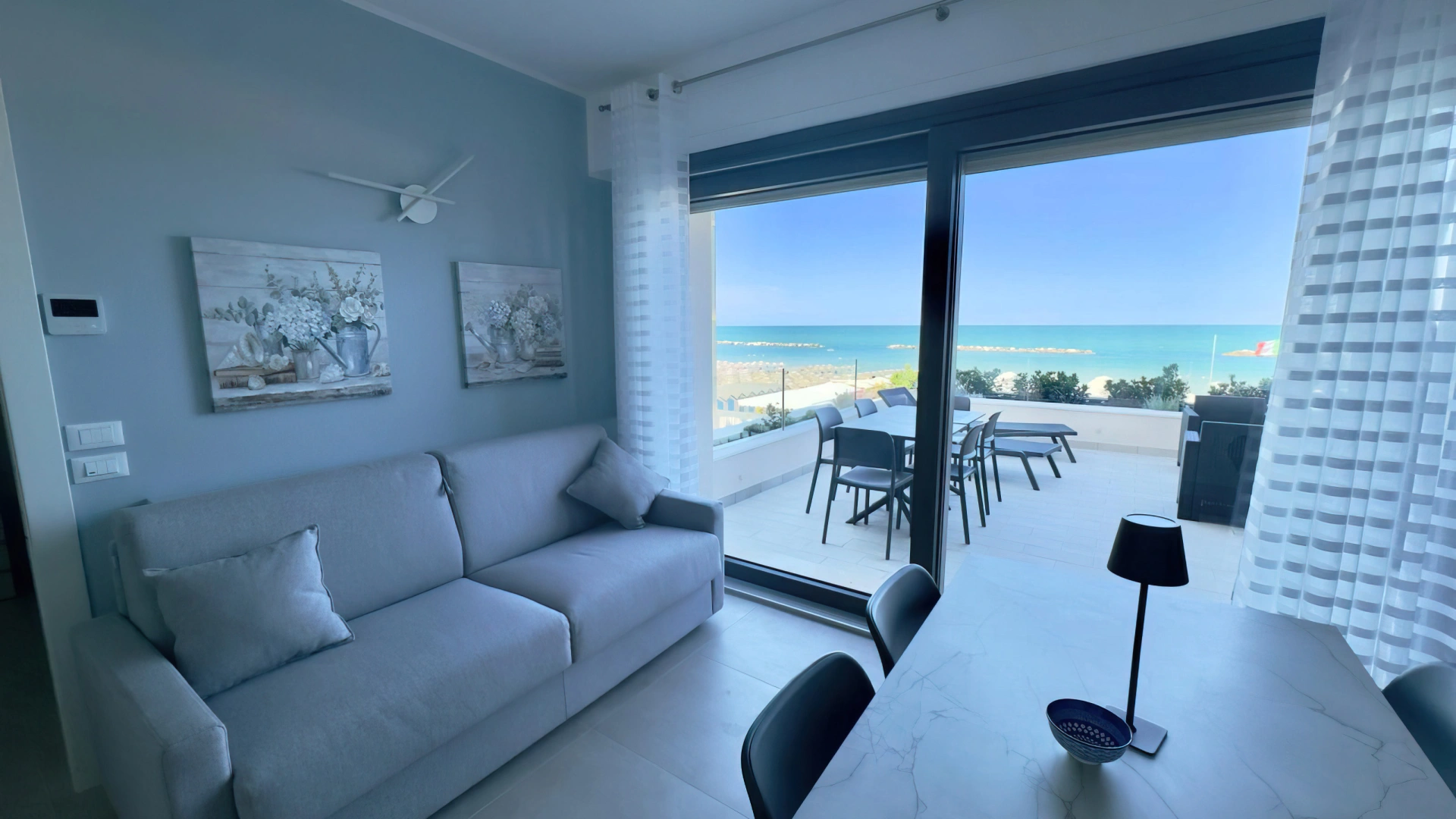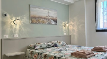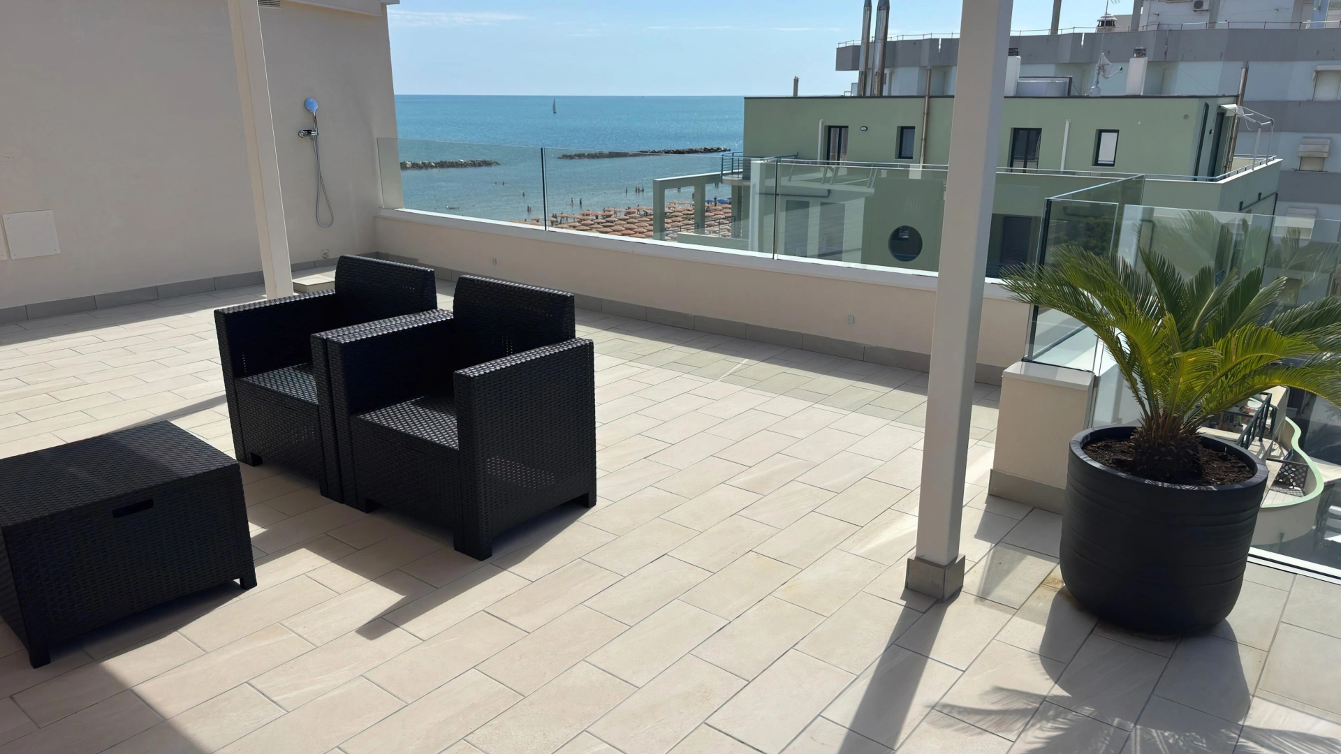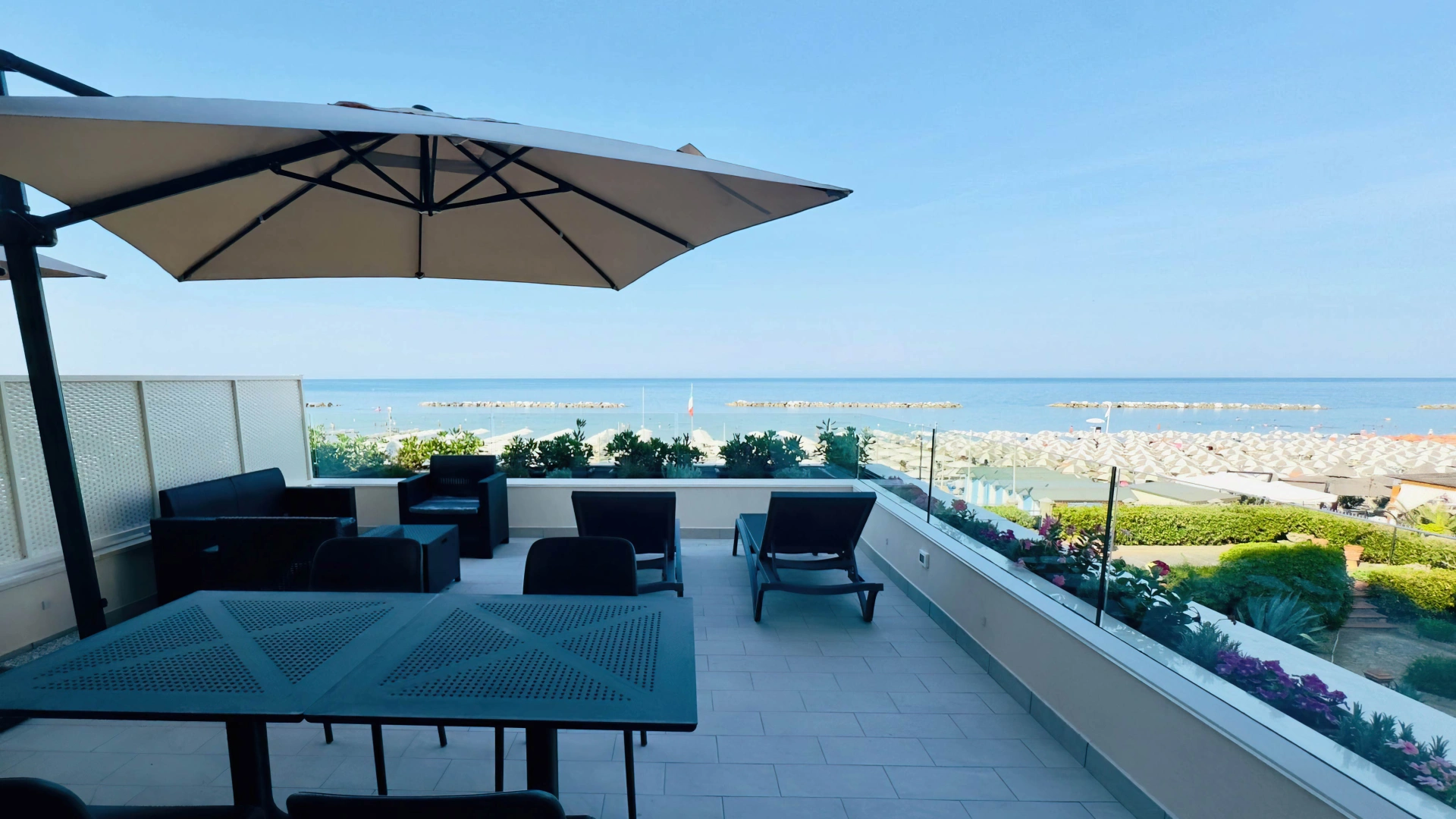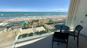 Das Anwesen befindet sich in Pesaro und bietet auf der einen Seite Blick auf die Küste und auf der anderen Seite auf den Strand. Das historische Zentrum ist etwa zwanzig Gehminuten entfernt und den Bahnhof von Pesaro erreichen Sie nach einer etwa 20-minütigen Busfahrt.