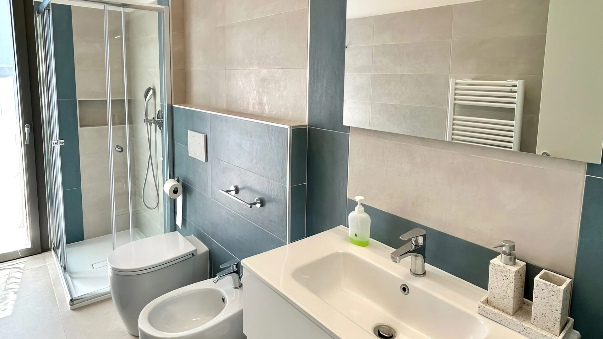 MENSCHEN MIT EINGESCHRÄNKTER MOBILITÄT UND BEHINDERUNGEN: Eingang im Erdgeschoss, barrierefreier Aufzug, Zimmer mit Rollstuhlplatz und Badezimmer mit barrierefreier Dusche.