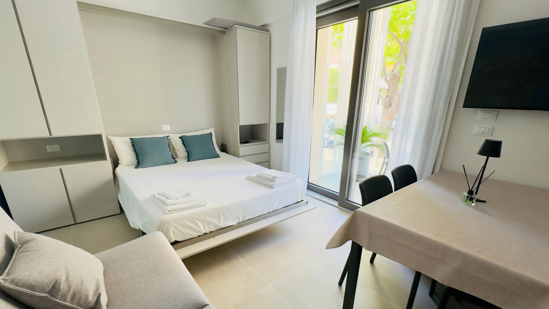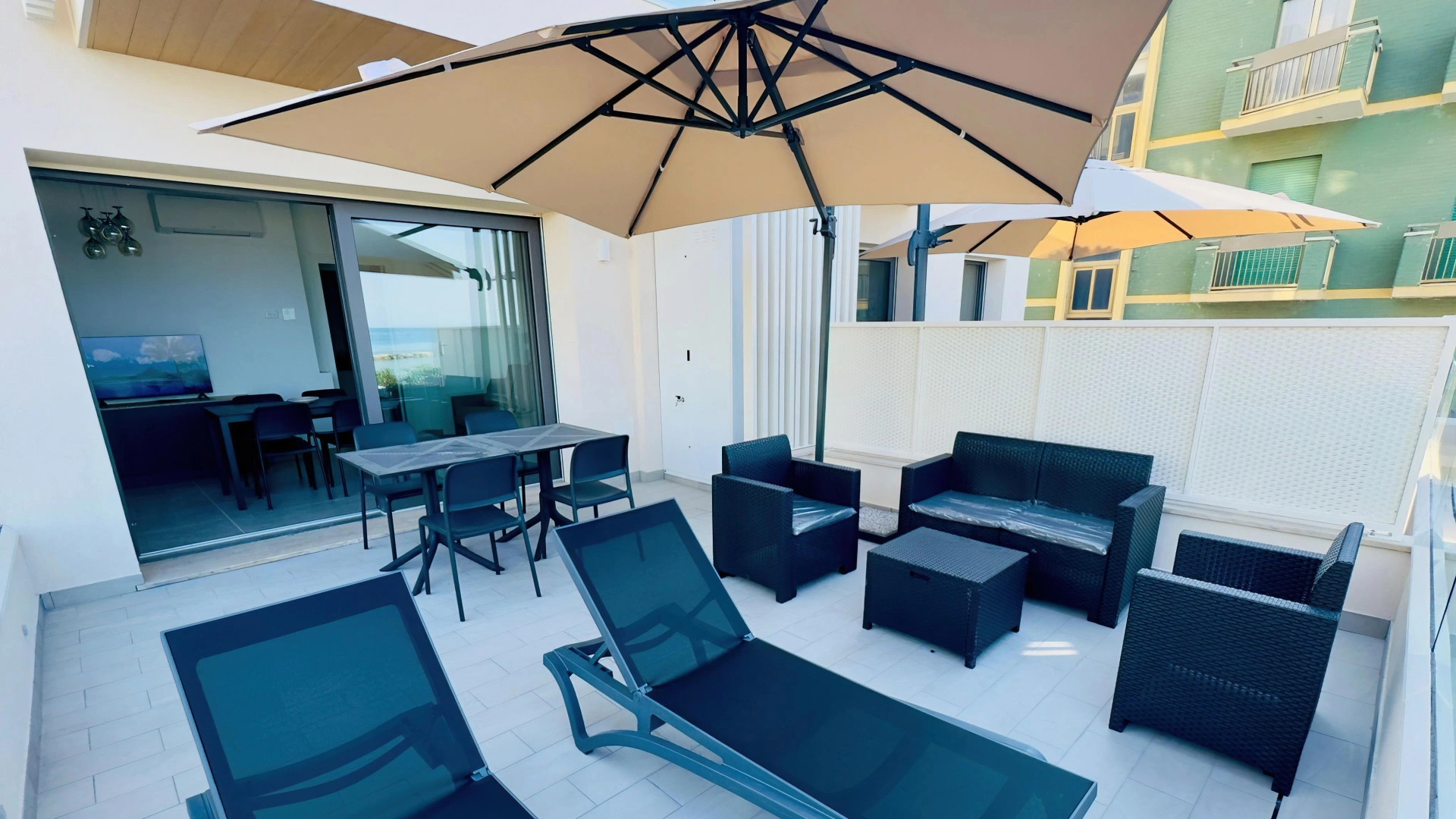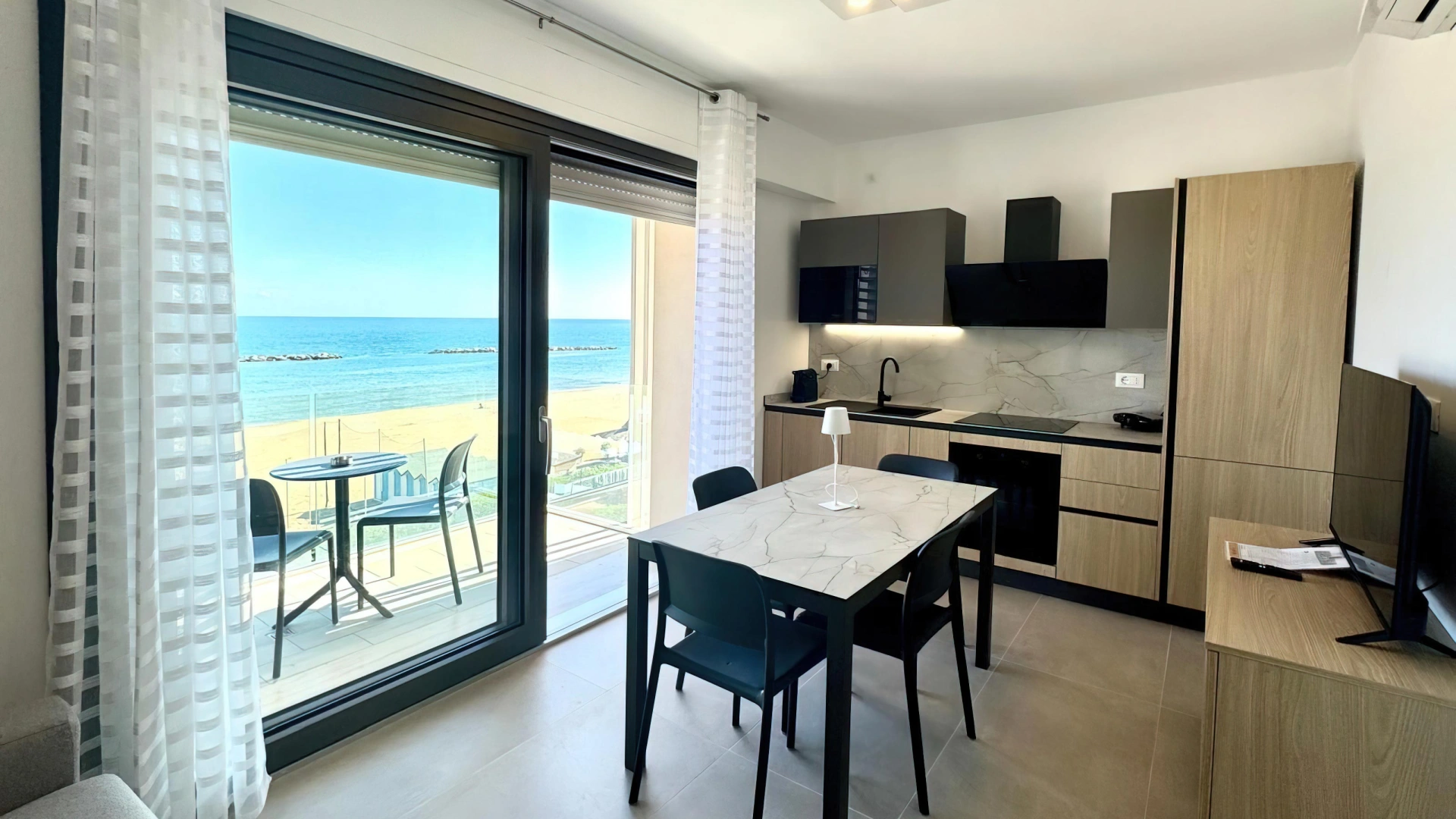 Alle Apartments verfügen über einen Balkon, Klimaanlage, WLAN, Smart-TV, Safe, Waschmaschine und ein Badezimmer mit Dusche und Haartrockner. Die Apartments zur Vorderseite bieten zudem Meerblick.