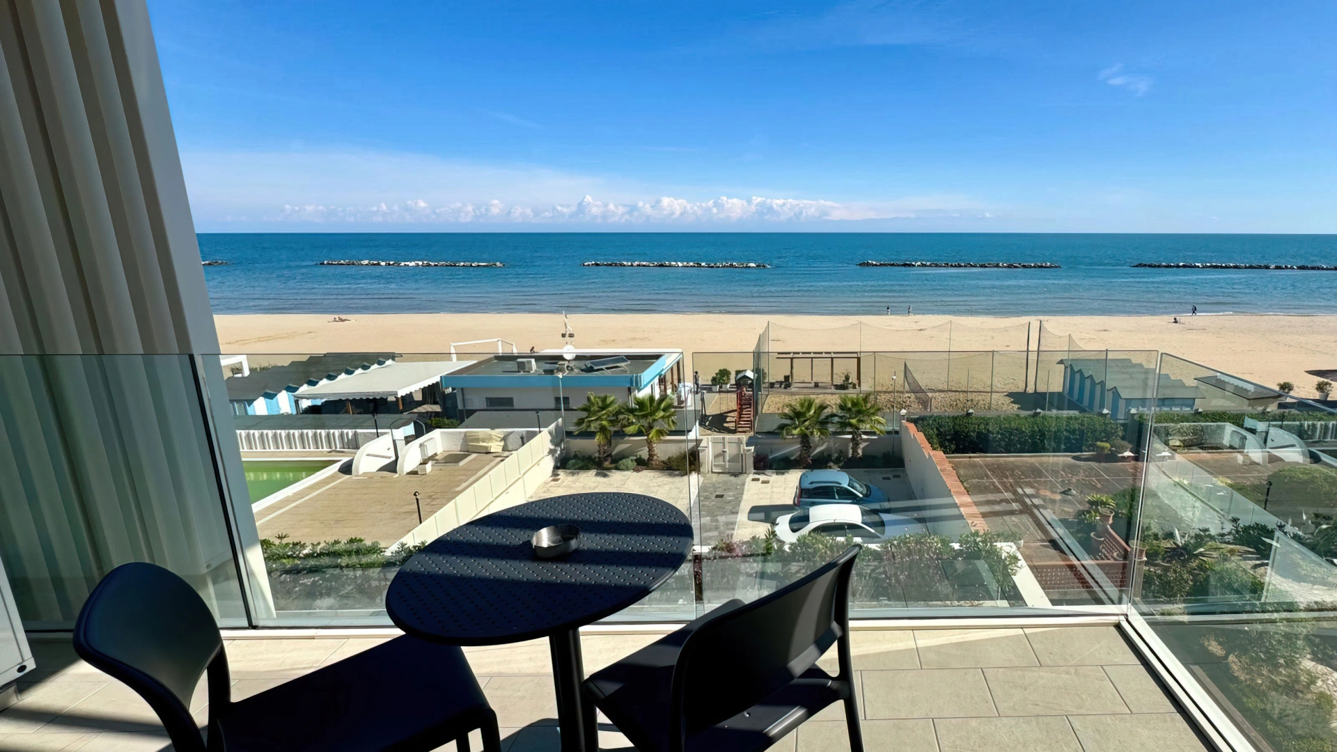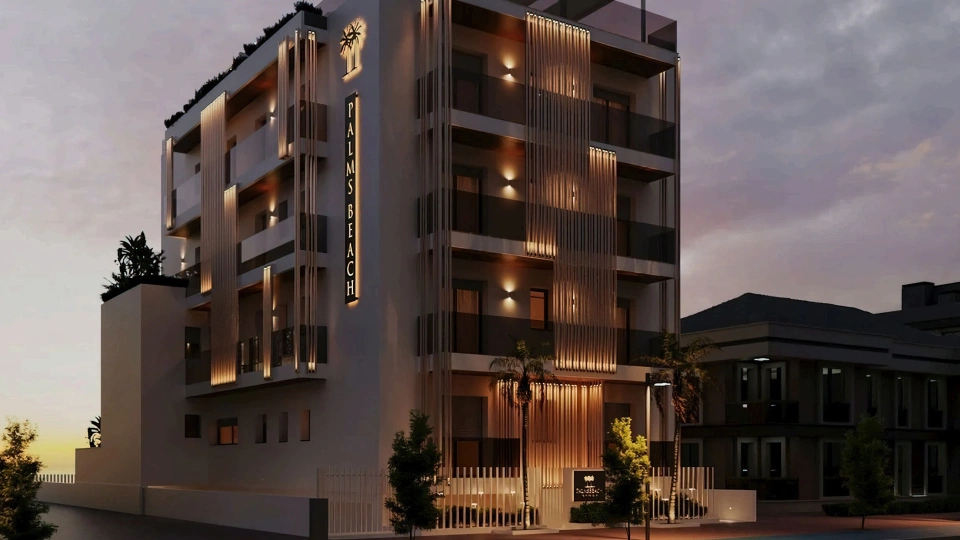 Das Palms Beach Residence , ein 4-Sterne-Hotel in Pesaro, liegt direkt am Meer und bietet direkten Zugang zum Strand. Es bietet neue Apartments mit voll ausgestatteter Küche, Balkon und Waschmaschine. Es bietet überdachte und nicht überdachte Parkplätze und erlaubt kleine Haustiere.