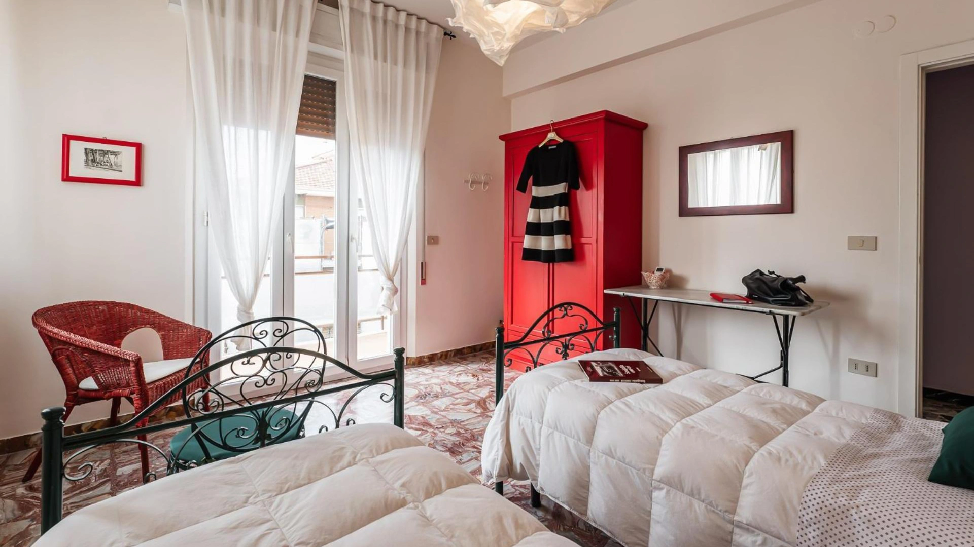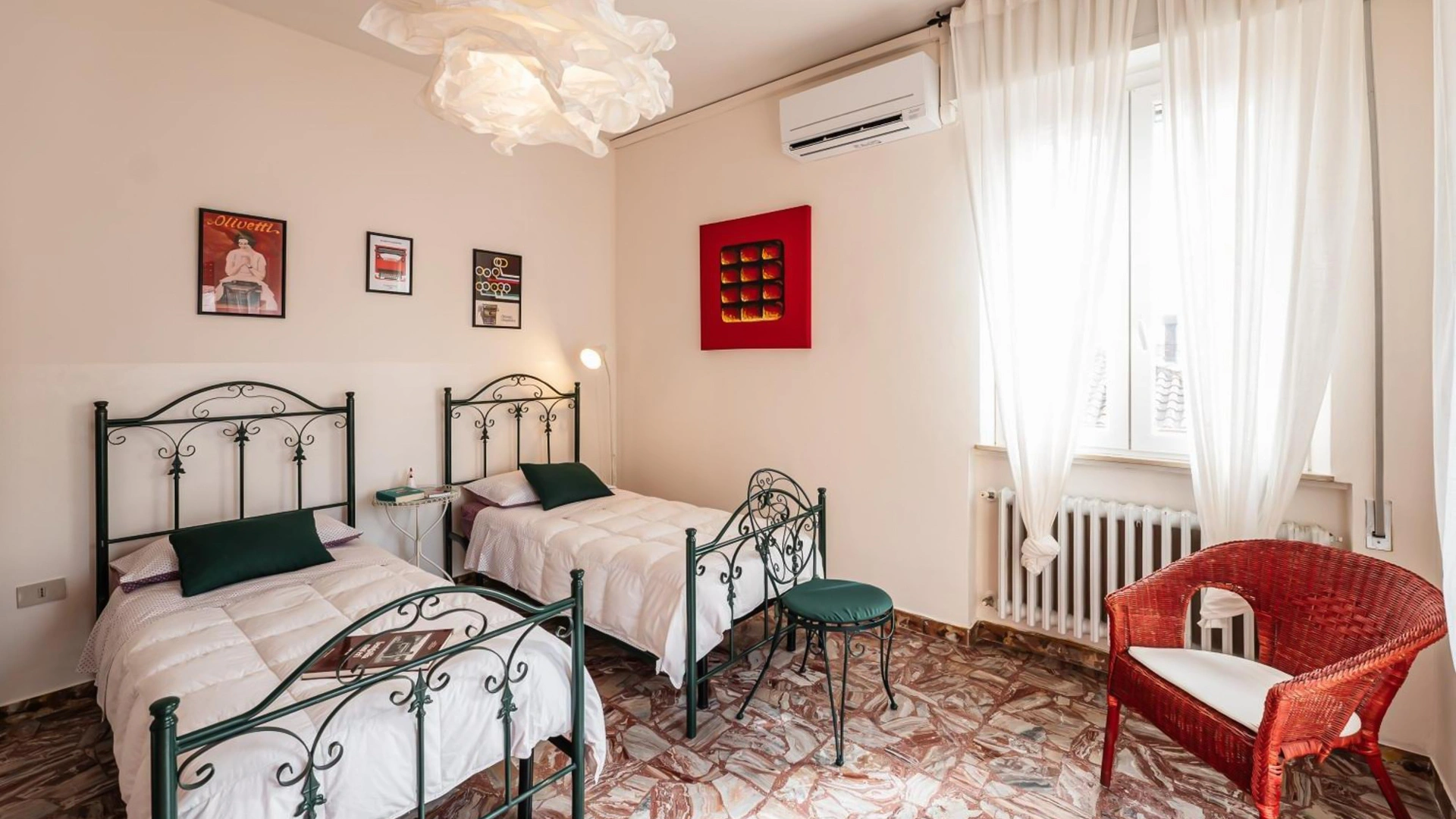 Das B&B verfügt über ein Doppelzimmer und 2 Zweibettzimmer, die jeweils über individuelle Möbel und Farben verfügen. Für Gruppen von 4 oder 6 Personen sind Lösungen verfügbar, indem 2 Zimmer mit Verbindungstür oder das gesamte Apartment gebucht werden. Die Unterkünfte sind alle mit einer Klimaanlage oder einem Ventilator und kostenfreiem WLAN ausgestattet. Eines der Zimmer verfügt über einen eigenen Balkon. Das geräumige Gemeinschaftsbad bietet kostenlose Körperpflegeprodukte, eine Dusche und einen Haartrockner.