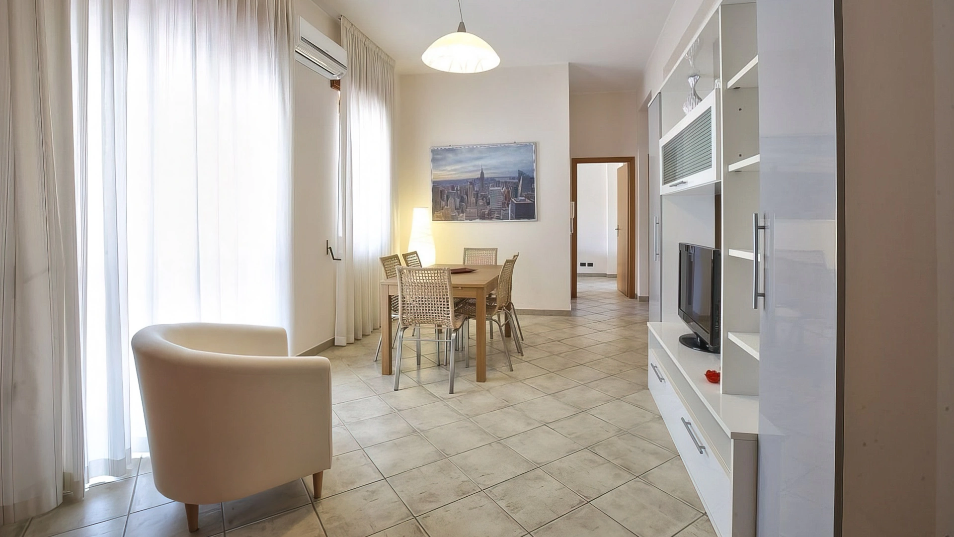 Es stehen fünf Apartments zur Verfügung, darunter Ein- und Zweizimmerwohnungen. Alle verfügen über einen Balkon, Klimaanlage, WLAN, Fernseher, Kochnische (mit Kühlschrank, Backofen, Geschirr und Kaffeemaschine), Badezimmer mit Dusche oder Badewanne, Haartrockner, Waschmaschine, Bügeleisen und Bügelbrett. Tägliche Reinigung ist gegen Gebühr möglich.