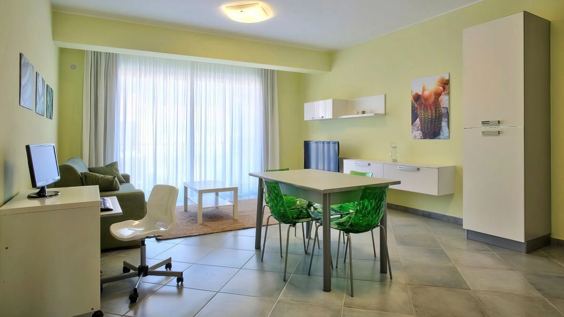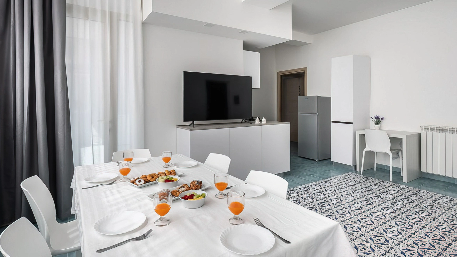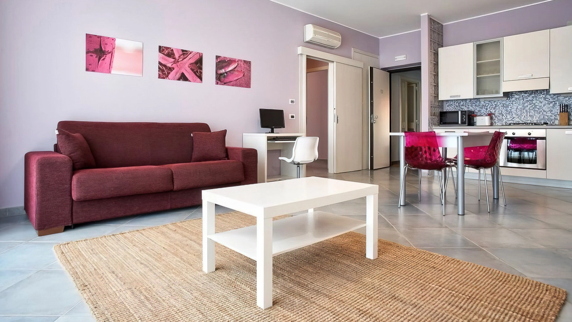 Es stehen Apartments mit zwei oder drei Zimmern zur Verfügung. Alle Apartments sind mit Fernseher, WLAN, Klimaanlage, Waschmaschine, Bügeleisen, einer Küche mit Backofen, Mikrowelle, Kühlschrank und Geschirrspüler sowie einem Badezimmer mit Dusche und Haartrockner ausgestattet. Einige bieten Meerblick, andere Poolblick. Bettwäsche und Handtücher sind gegen Gebühr erhältlich.