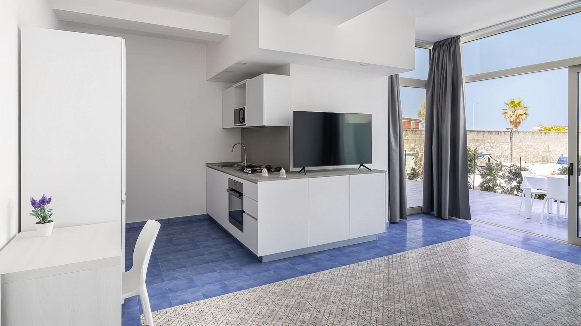 Terraces d'Orlando ist eine Wohnanlage mit Ein- und Zwei-Zimmer-Apartments, die über große Terrassen, voll ausgestattete Küchen, Badezimmer und Waschmaschinen verfügen. Zur Ausstattung gehören ein Swimmingpool, Parkplätze und ein Kinderspielplatz. Haustiere sind willkommen.