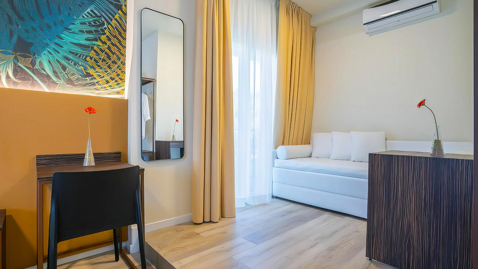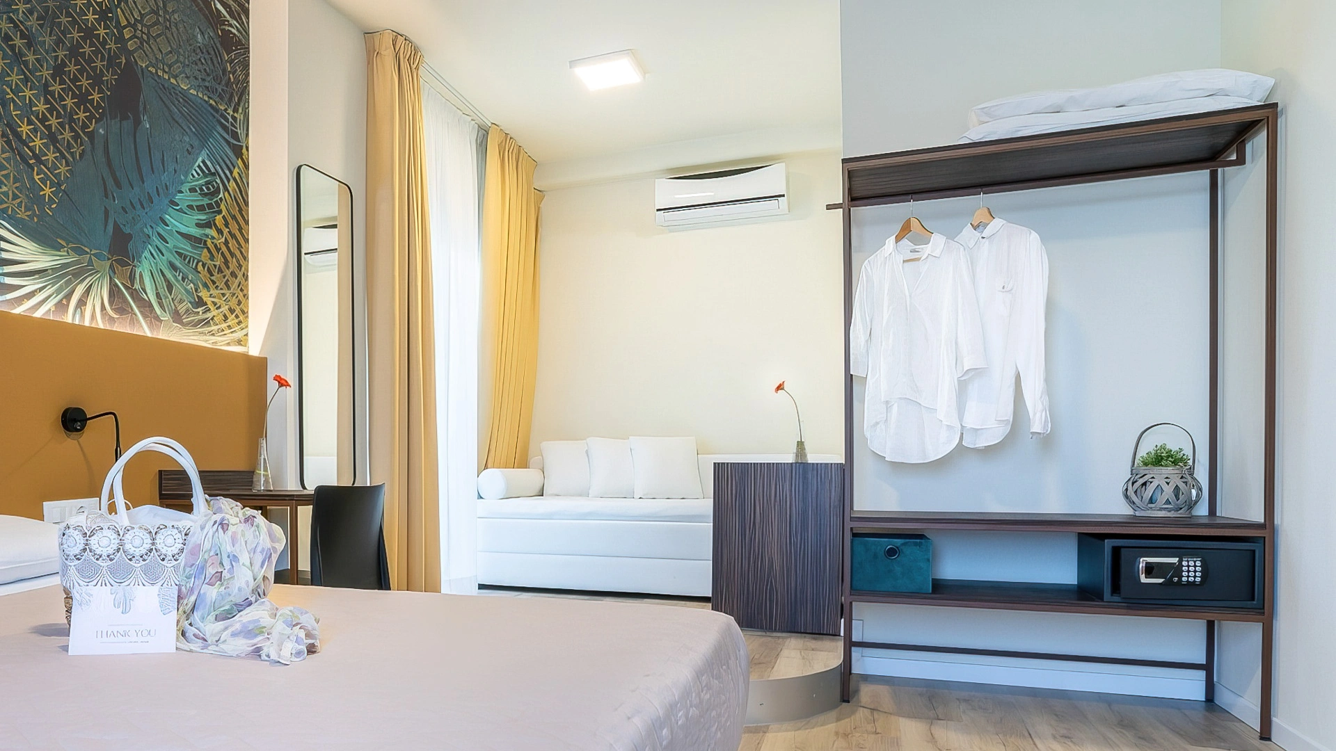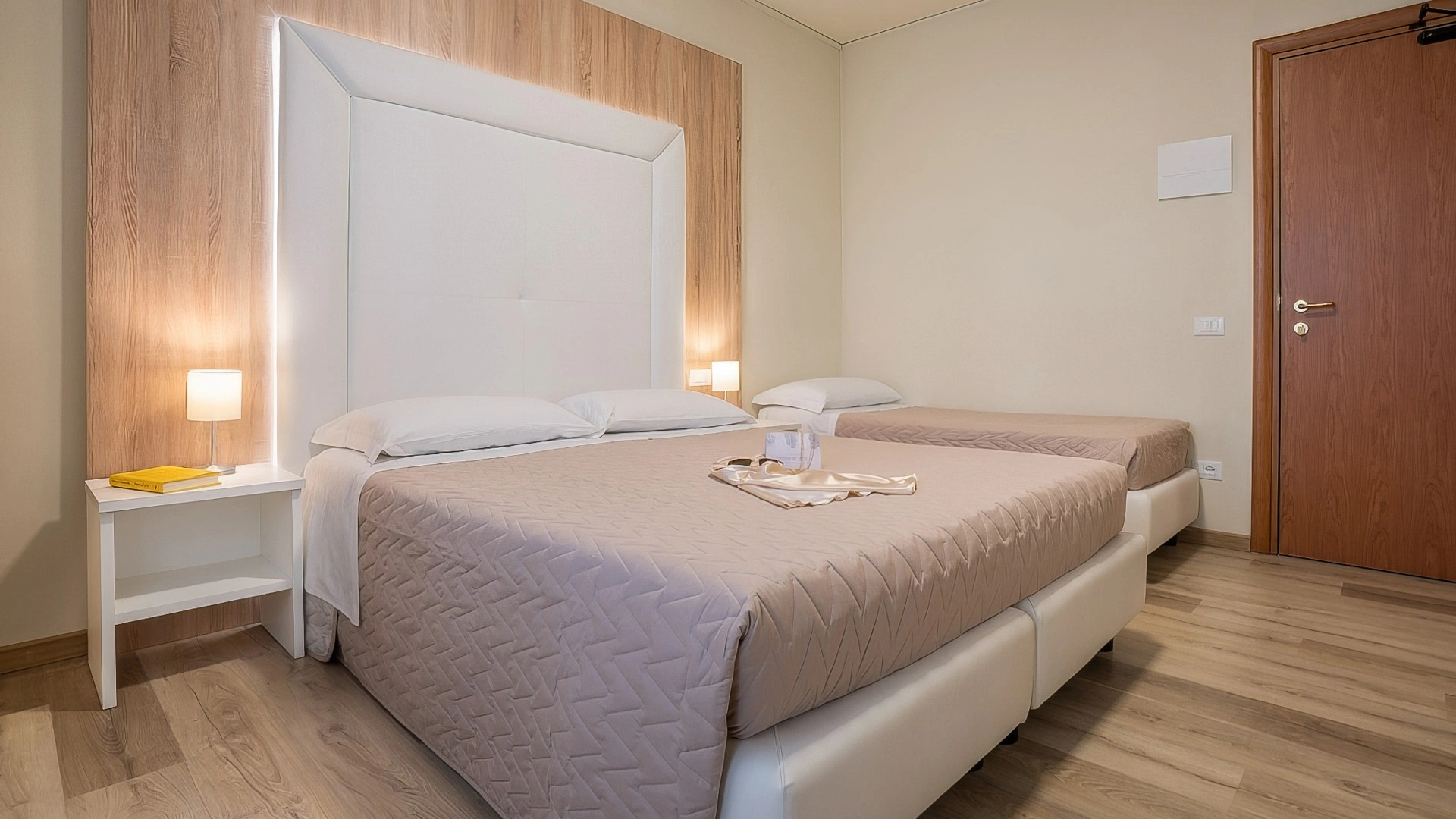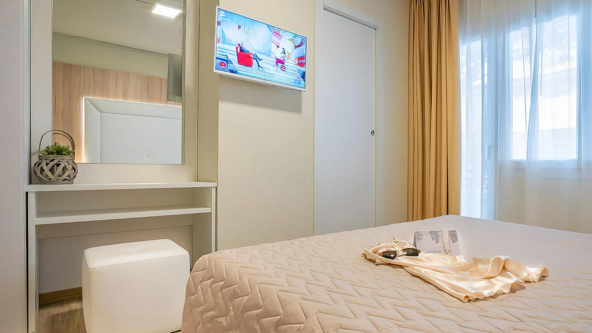 Die Unterkünfte sind in einem modernen Stil mit hellen oder warmen und entspannenden Tönen eingerichtet und stehen als Einzel-, Doppel-, Dreibett- und Vierbettzimmer zur Verfügung. Alle verfügen über Klimaanlage, WLAN-Verbindung, Fernseher, Safe, Telefon und ein eigenes Badezimmer mit Dusche, Haartrockner und Pflegeprodukten.
