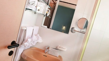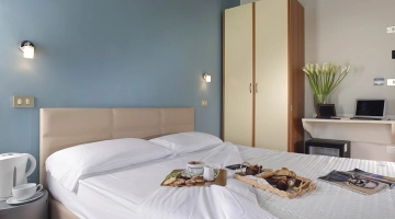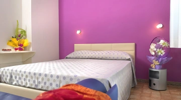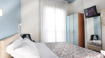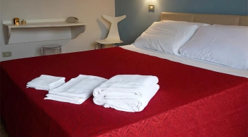 FAMILY: stanza formata da due ambienti comunicanti. Il principale è dotato di letto matrimoniale king size minibar e tutti i servizi già elencati. Il secondo ambiente contiene altri 2 posti letto.