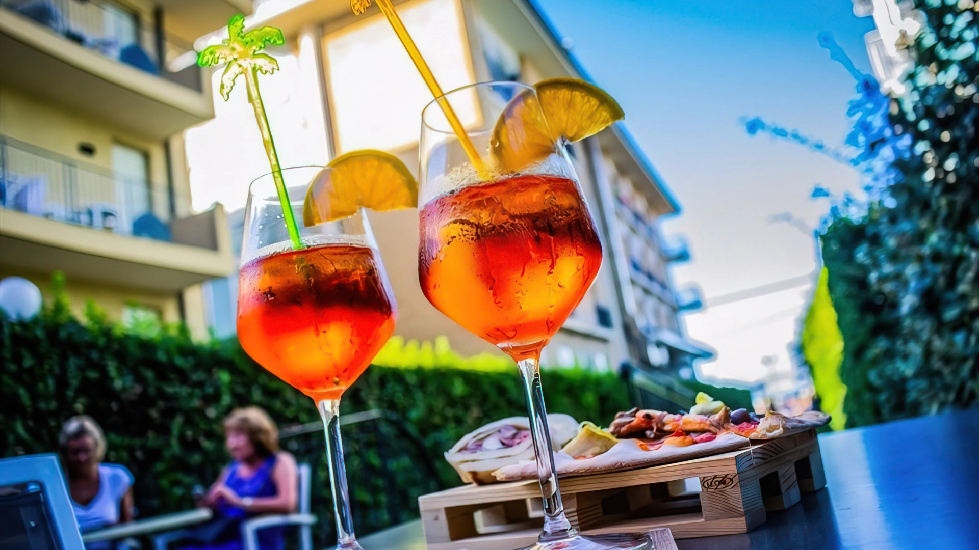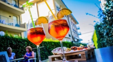 COLAZIONE: buffet dolce e salato con dolci, crostate, pane caldo a scelta, pancake, crepes, frutta fresca, spremute, centrifughe di verdure, uova e bacon.