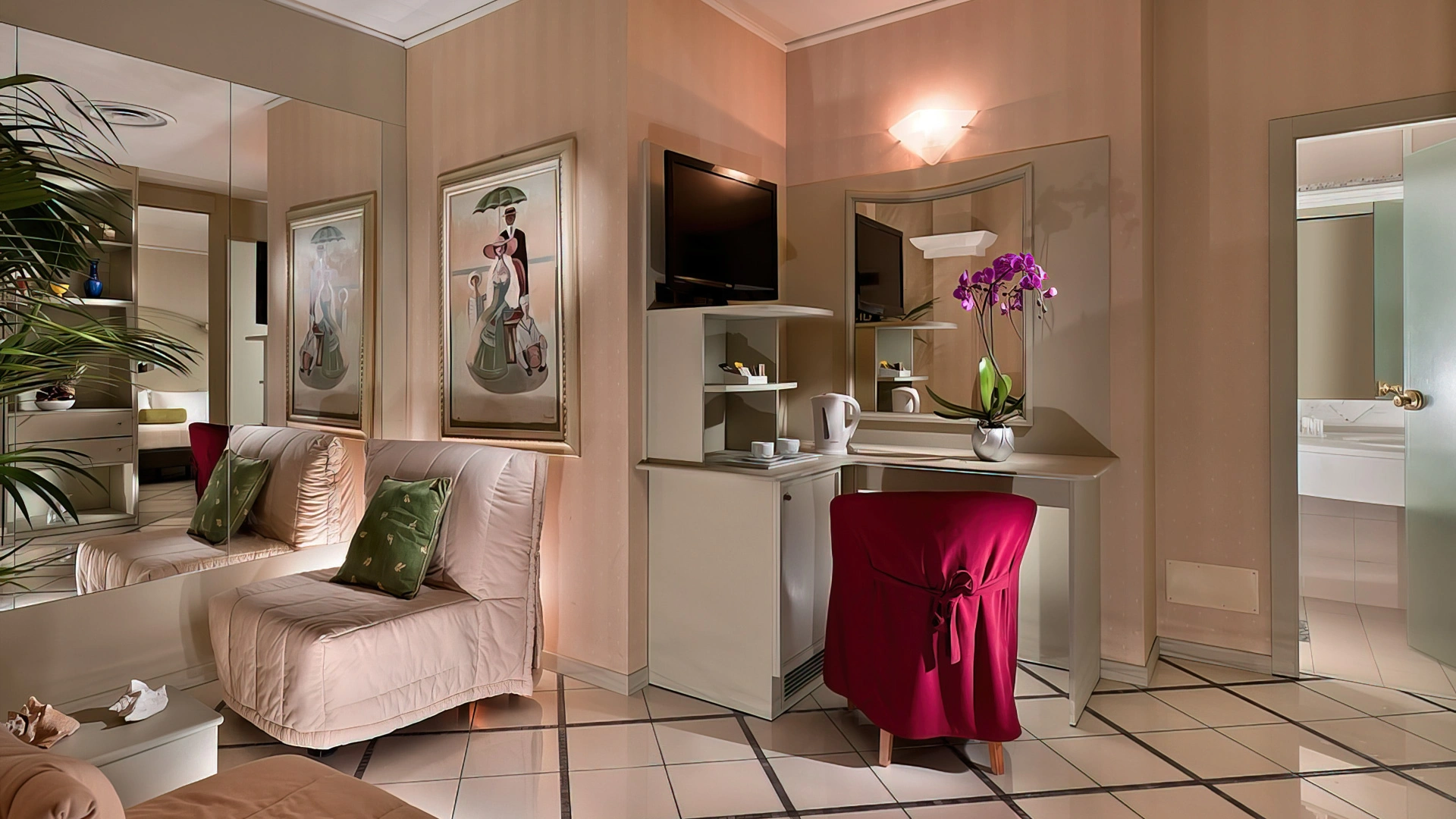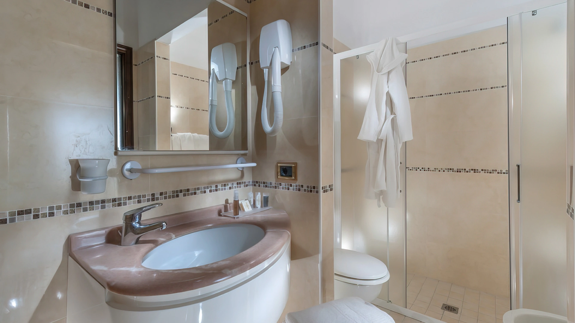 Le camere sono dotate di aria condizionata, tapparelle elettriche, kit coffee e tea maker, Wi-Fi fibra 50 Mbit/s, TV sat, scrivania, cassaforte, frigobar, bagno con box doccia, set di cortesia e phon. Possibilità di pantofole e accappatoio (gratis solo nelle suite).