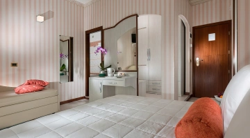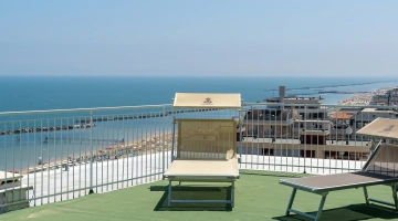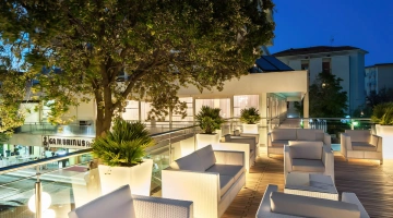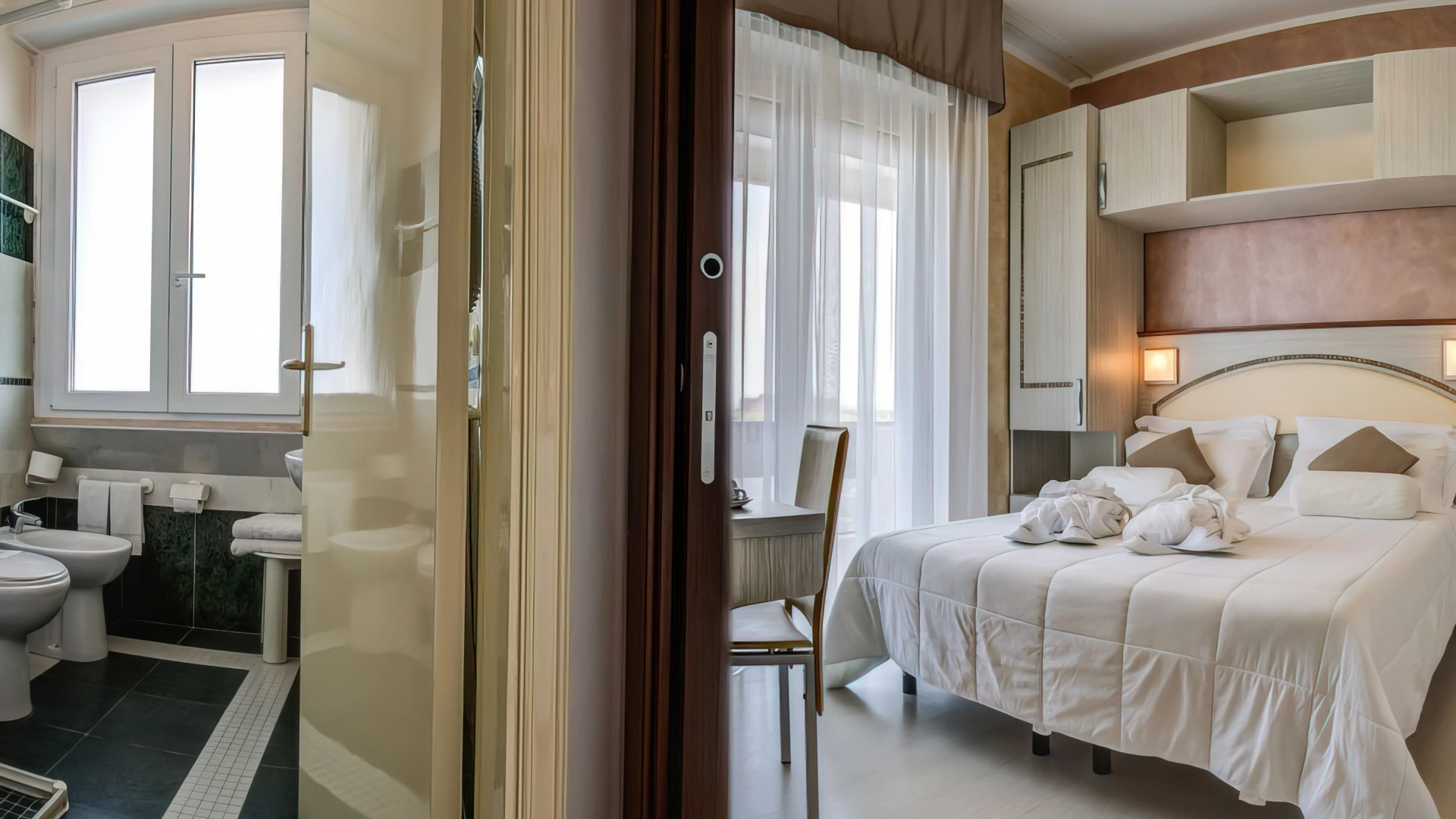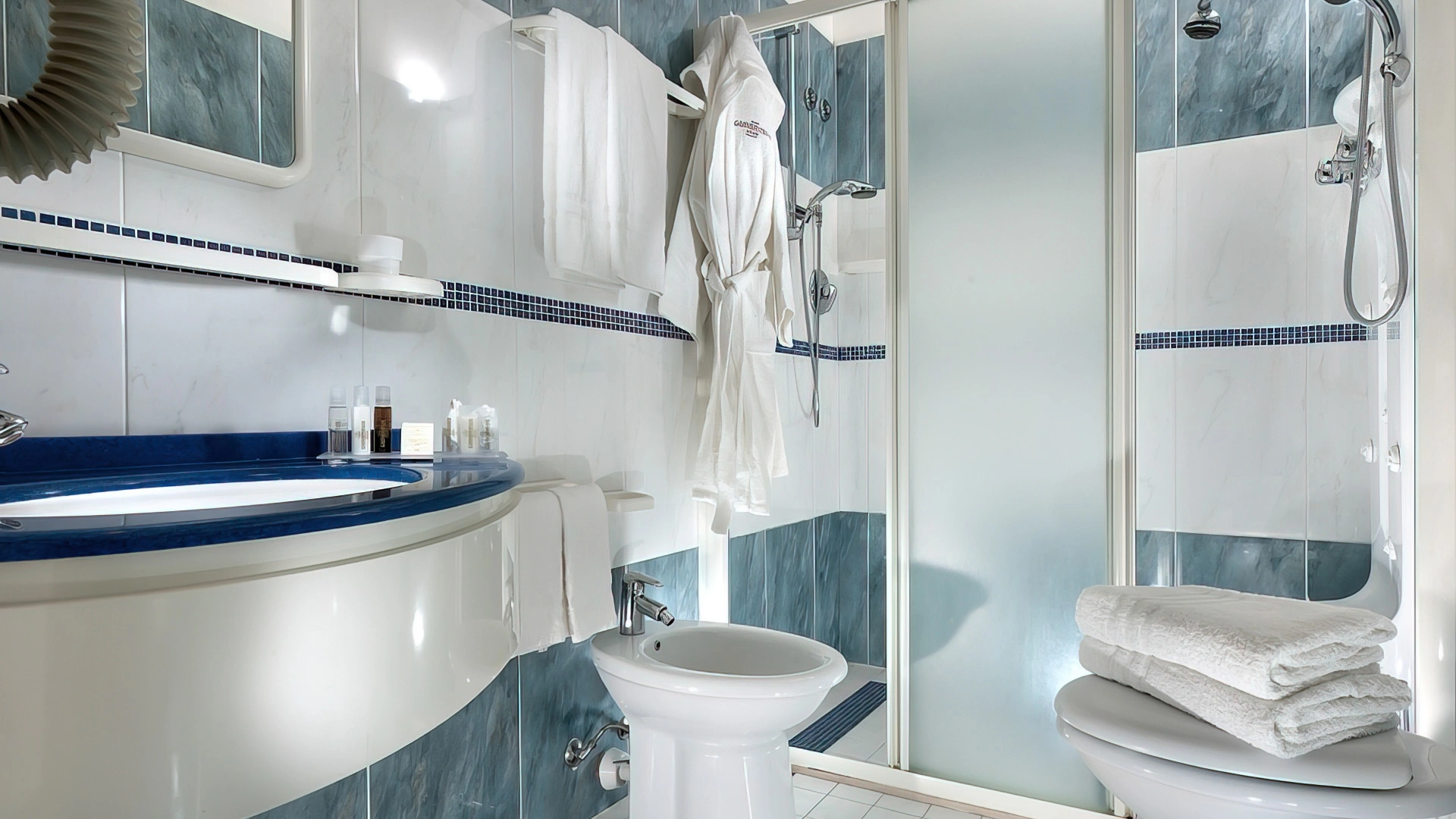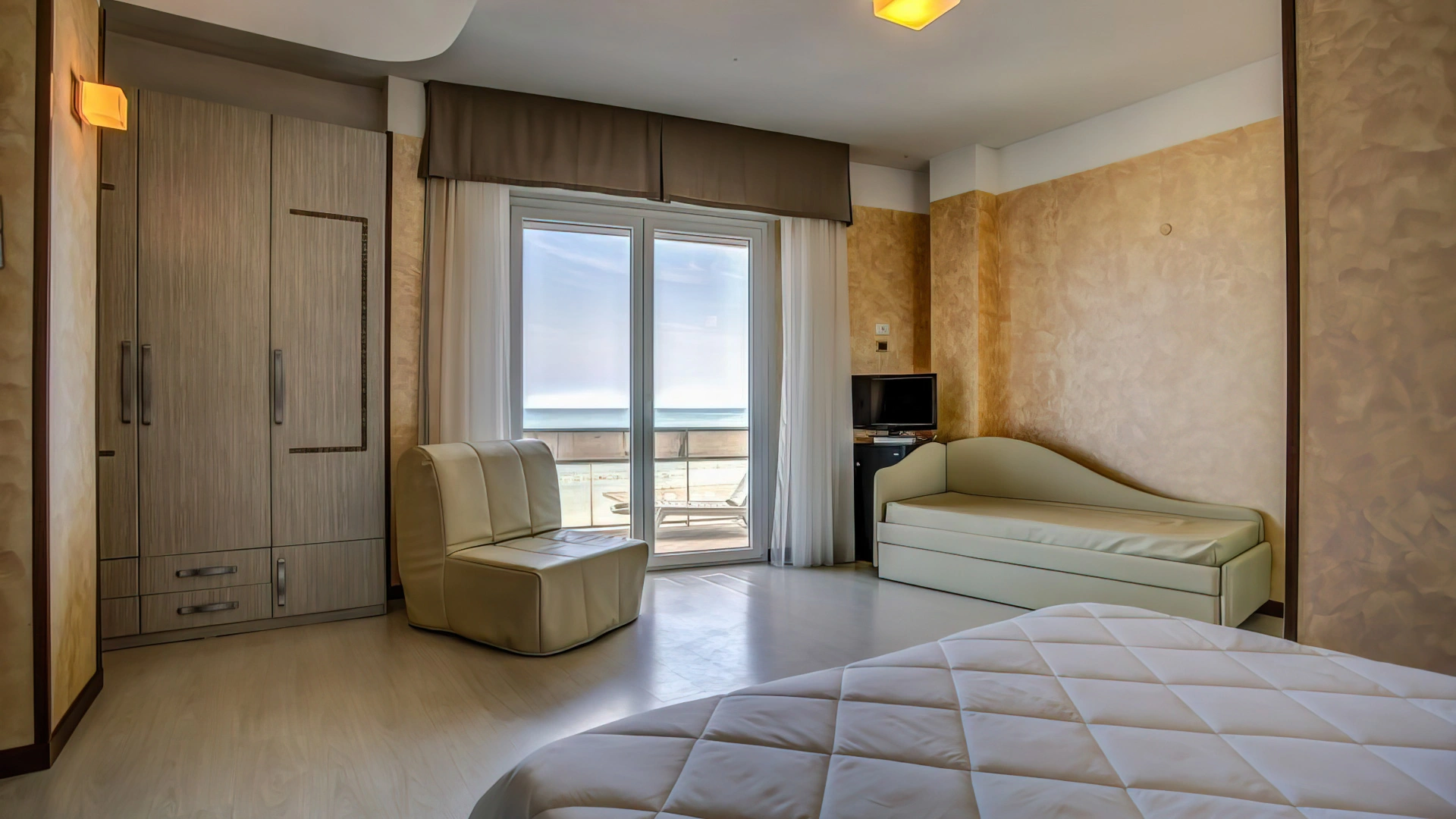 DELUXE SUPERIOR: al 7° o '8° piano, balcone vista mare con chaise longue, set cortesia + set cosmesi ADA, box doccia o vasca idromassaggio a richiesta, bollitore.