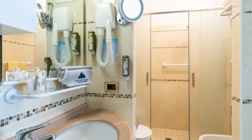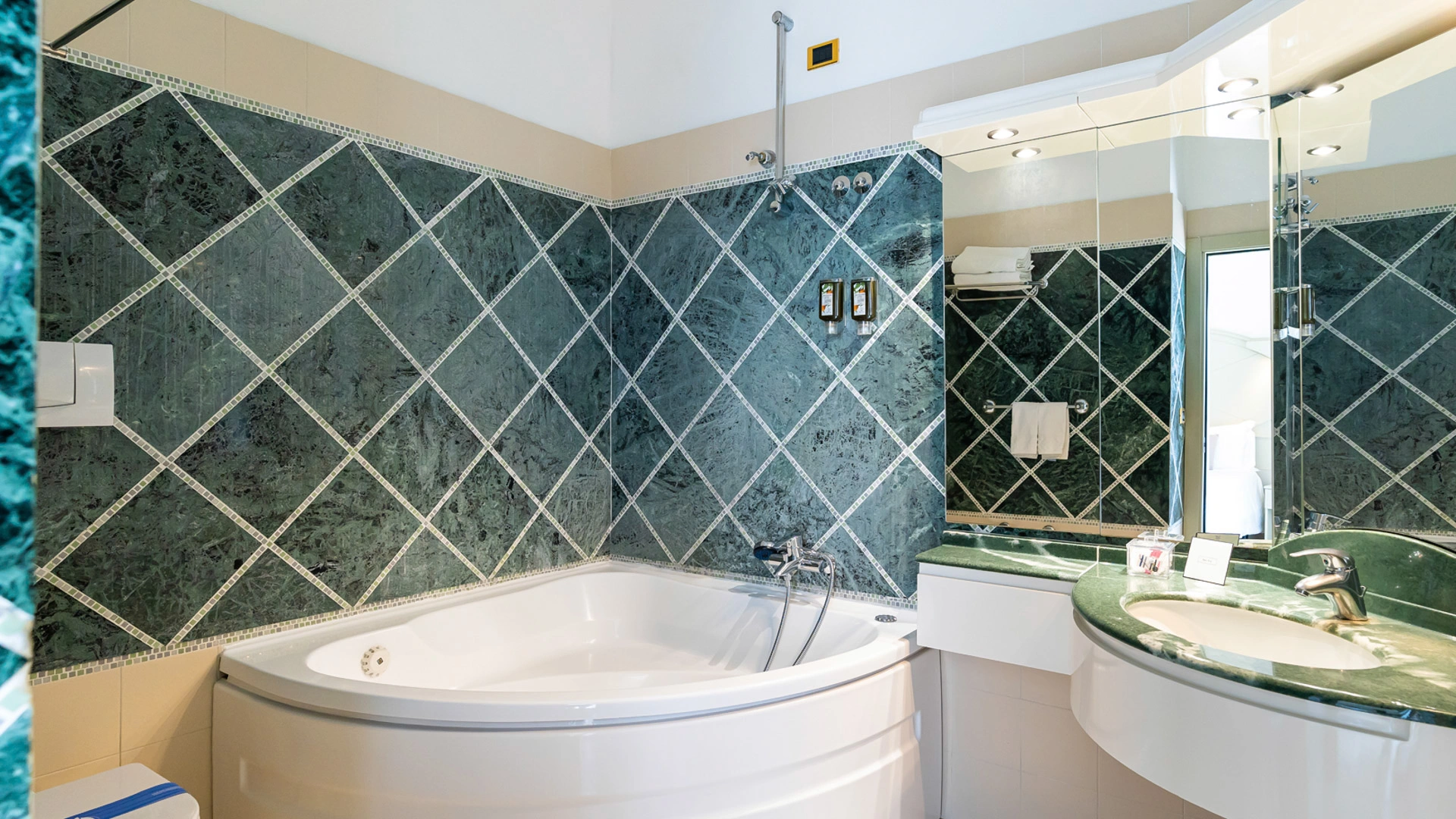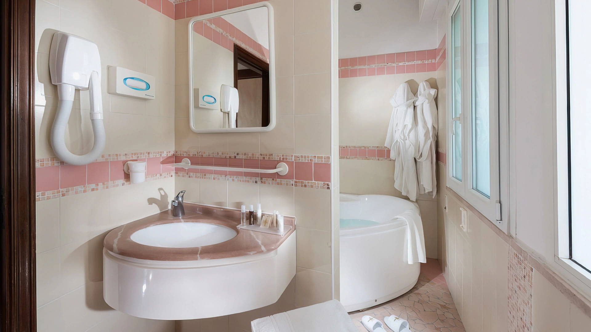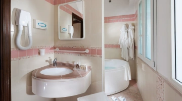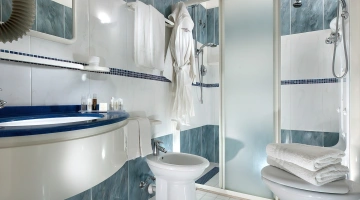 DELUXE: al 6° o 7° piano, balcone vista mare con chaise longue, set cosmesi, box doccia idromassaggio, vasca idromassaggio a richiesta; bollitore in uso