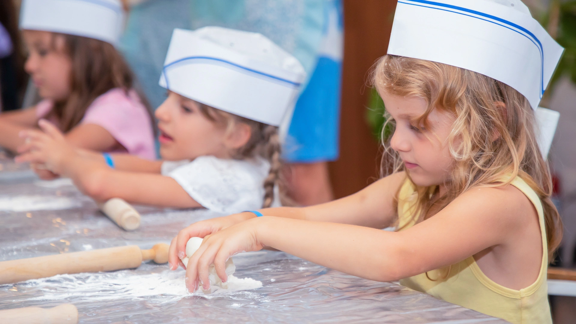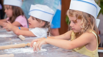 Ai pasti: seggioloni al tavolo, baby posateria, piatti e bicchieri in plastica anallergica.