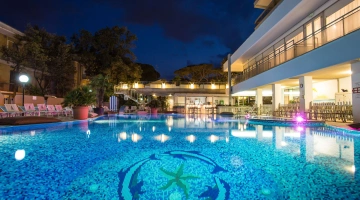 L'Hotel Gambrinus - Valentini Family Village, 4 stelle di Bellaria Igea Marina, si caratterizza per l'accesso diretto alla spiaggia, piscina riscaldata con pannelli solari (trampolino, area bimbi, angolo idromassaggio di 30 mq), 2 ristoranti a scelta, parcheggio privato. Animali di piccola taglia ammessi.