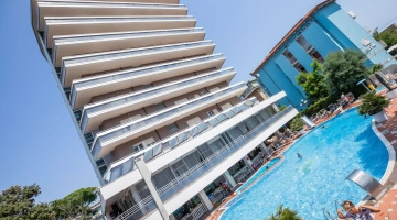 La struttura dispone di 3 piscine (piscina principale, vasca idromassaggio, vasca per bambini), area fitness (disponibile su prenotazione), giardino, terrazza, solarium, 2 ascensori, area kids, sala TV, sala lettura, sala lounge, bar nella hall e a bordo piscina. Lo staff organizza serate a tema e offre l'aperitivo tutti i giorni.