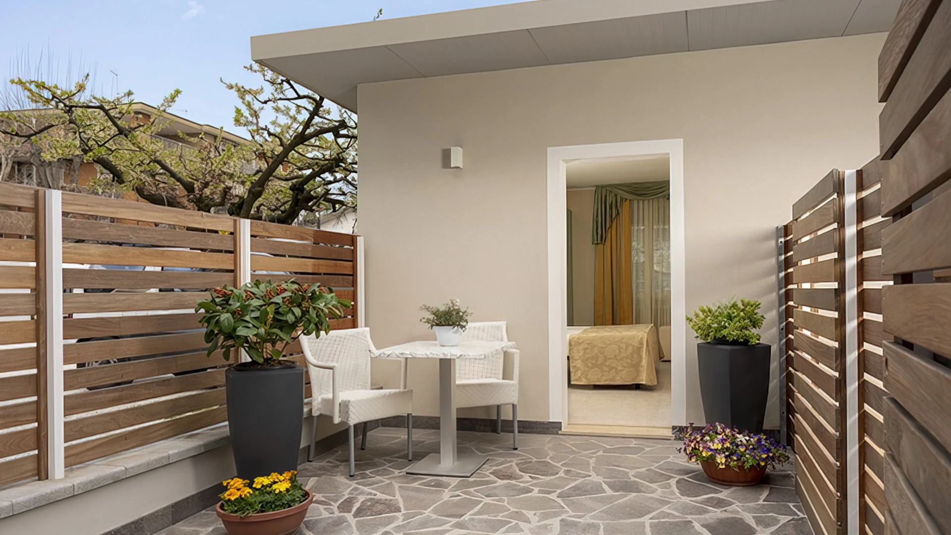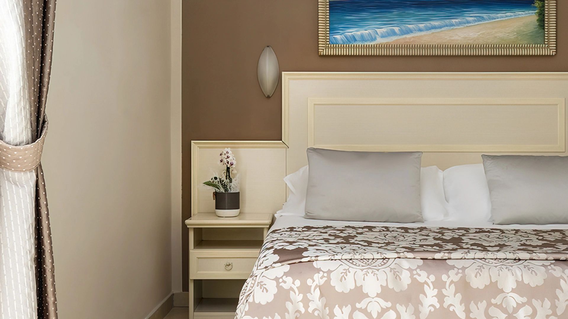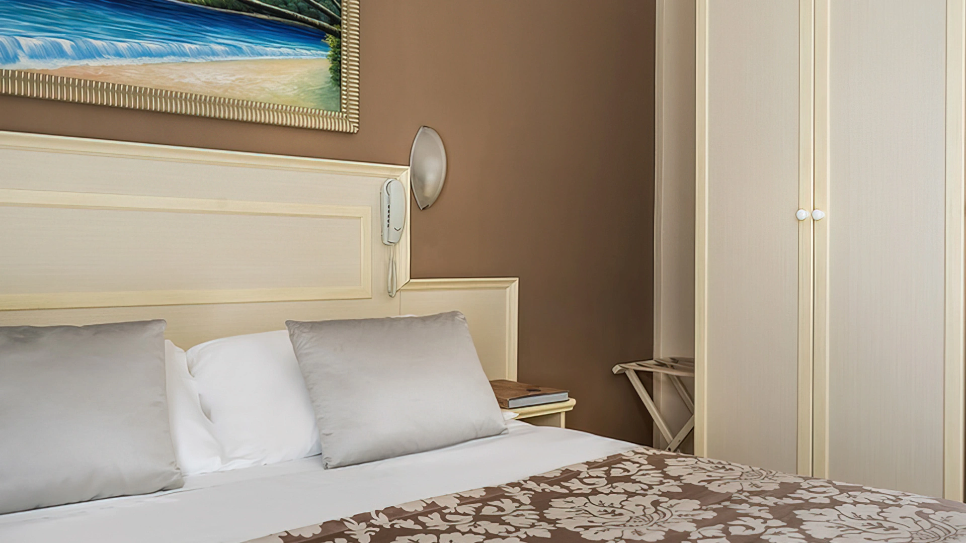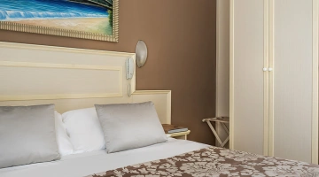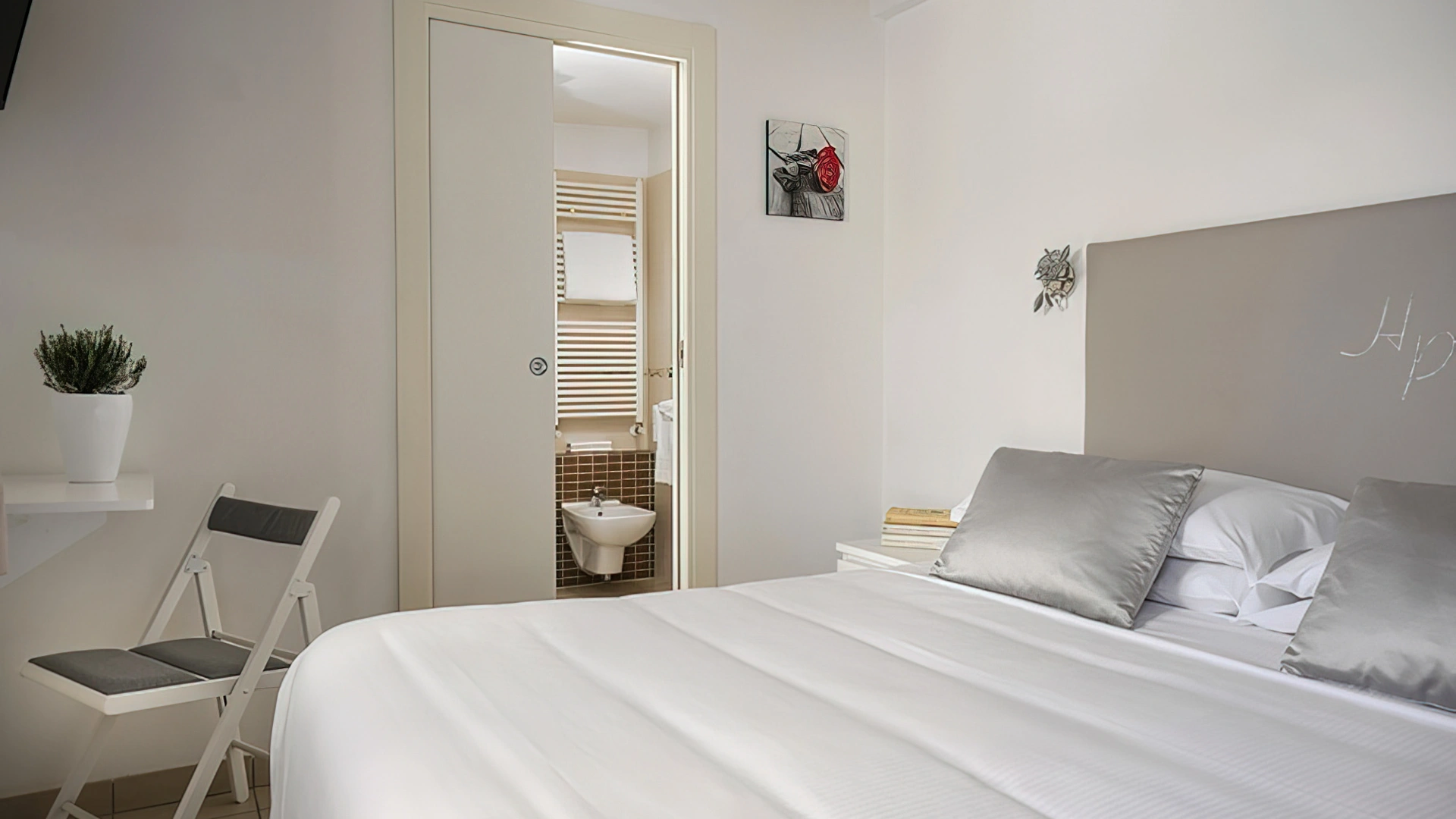 Le camere sono dotate di balcone, aria condizionata, Wi-Fi fibra, TV sat, telefono, bagno con box doccia (oppure vasca) e phon; frigobar su richiesta a pagamento.