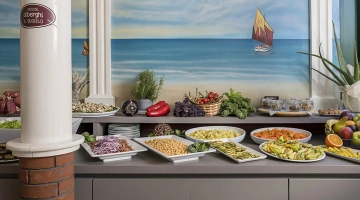 PRANZO E CENA: ai pasti è possibile scegliere tra diversi menù preparati con prodotti del territorio e verdure a Km0; inoltre, sono sempre presenti portate di pesce con il pescato del giorno. Acqua, vino e coca cola compresa.