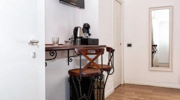 Il B&B offre camere dallo stile moderno con pavimenti in parquet e soffitti in pietra. Le stanze (tre matrimoniali e due triple) sono dotate di bagno privato con box doccia, phon e set di cortesia. Tutte hanno TV flat, aria condizionata, Wi-Fi, materassi in memory e frigobar. Infine, gli ospiti trovano in dotazione bollitore e macchina del caffè con cialde. Non è possibile aggiungere letti supplementari.