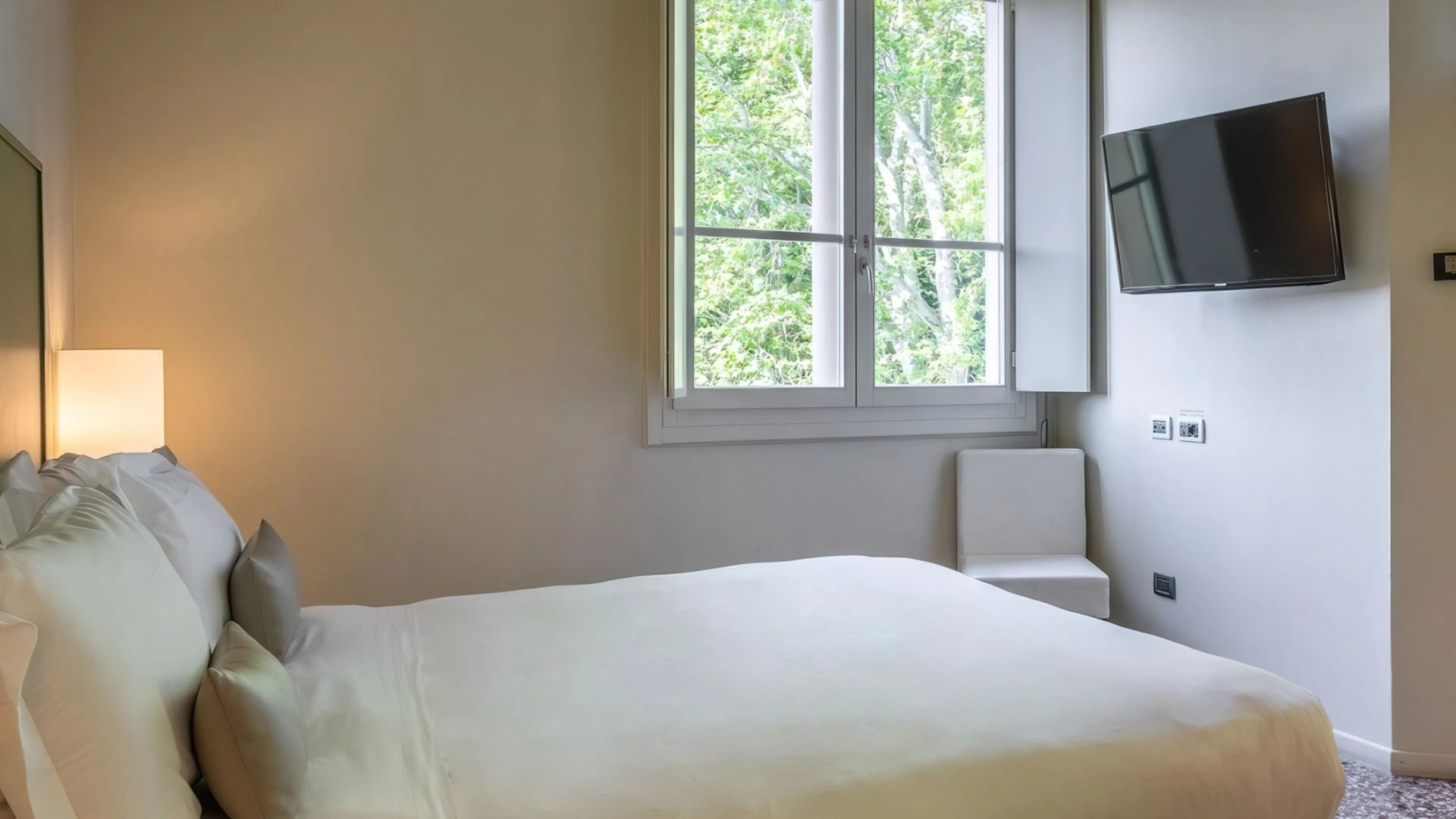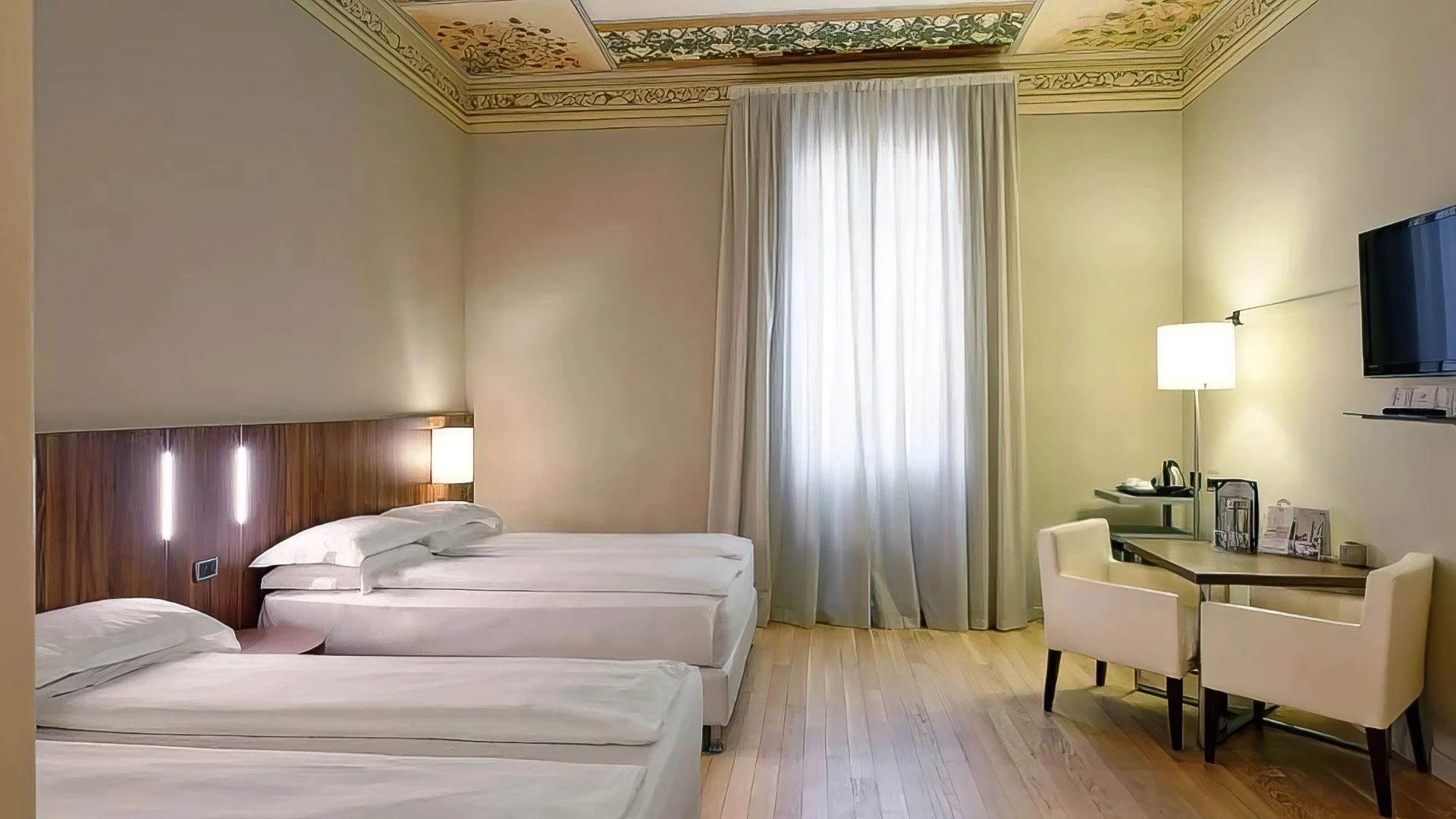 Sono presenti 100 sistemazioni arredate in stile moderno o liberty. Tutte dispongono di aria condizionata, riscaldamento, TV sat, minibar, bollitore per tè e caffè, cassaforte, adattatori universali, set di cortesia esclusivo e connessione Wi-Fi. Le suite hanno un'area soggiorno, bagno con vasca e doccia, soffitti con travi a vista e balconi con affaccio sulla città. L'innovativa Imperial Wellness Suite di 200 mq è situata all'ultimo piano e dispone di terrazza privata con area wellness dotata di bagno a vapore, doccia emozionale, attrezzatura Technogym e angolo relax.