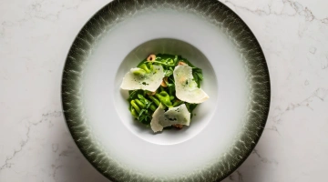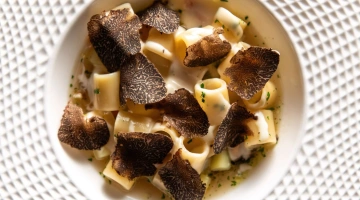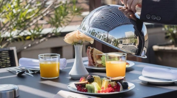 La prima colazione prevede un buffet di tipo continentale con proposte dolci e salate, bevande fredde e calde, caffetteria e prodotti senza glutine. È possibile gustare la colazione anche presso il bar pasticceria situato al piano terra o nella terrazza panoramica. La struttura dispone di differenti punti di ristoro: il ristorante stellato I Portici, l'osteria, la bottega e la pizzeria Portici. L'offerta culinaria si completa con l'Ex-Ghiacciaia medievale, un ambiente unico e prestigioso dove assaporare piatti e prodotti di alta qualità preparati da chef d'eccellenza, ideale per meeting privati o cene romantiche.