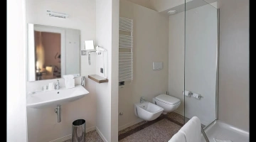 Disabili: disponibile parcheggio per disabili, ascensore, camere per ospiti in sedia a rotelle, bagni completi di WC con maniglioni e seduta rialzata, lavabo più basso e campanello d'emergenza.
