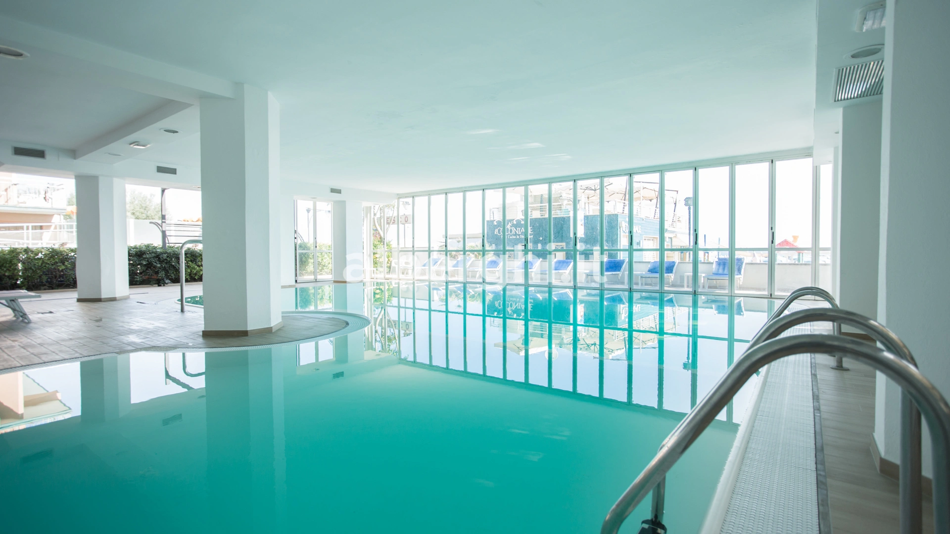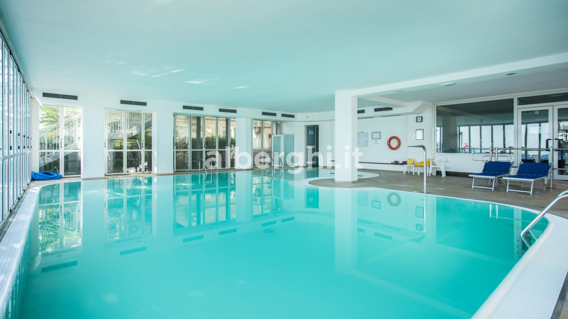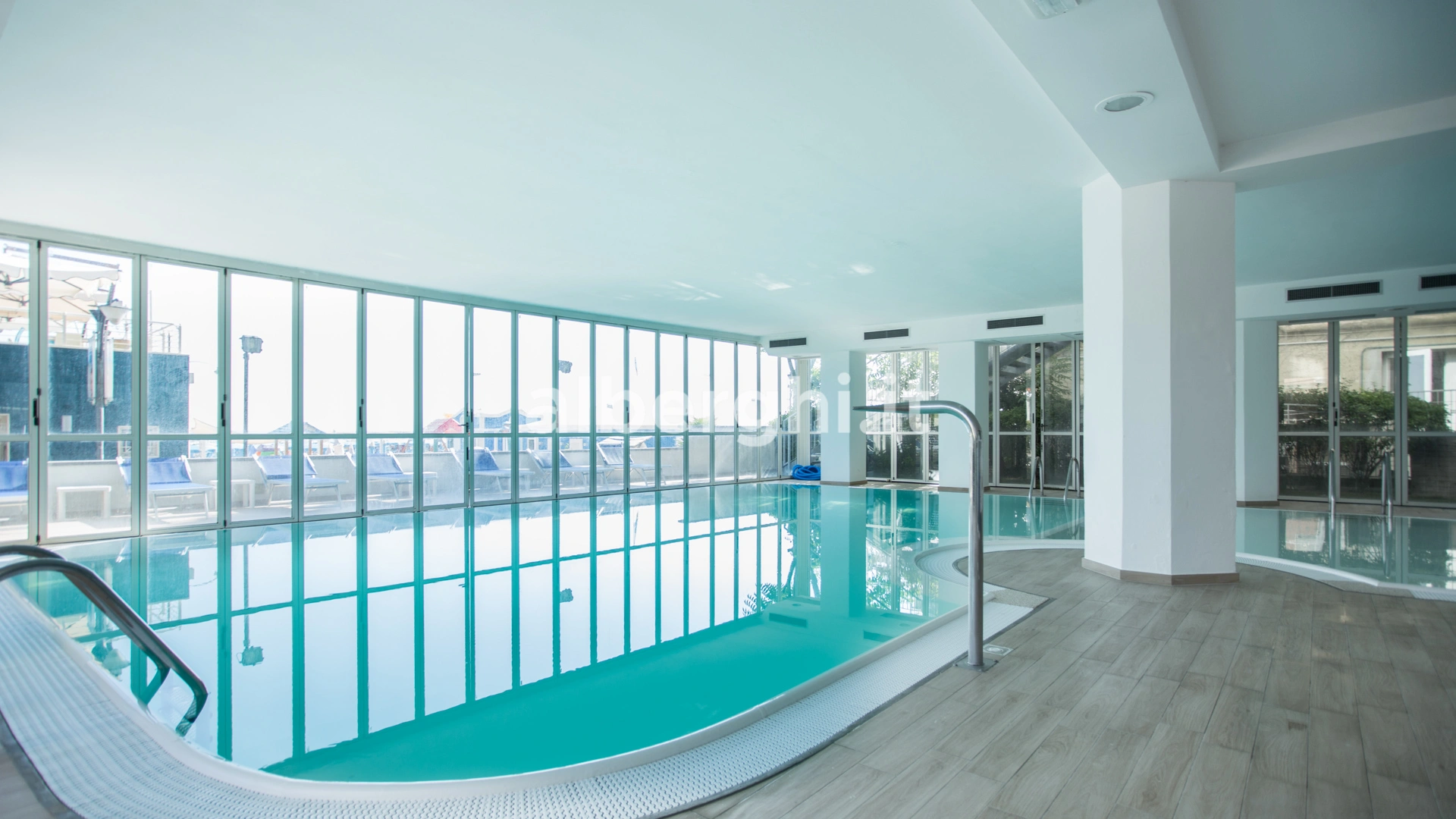 L’hotel dispone di una piscina riscaldata e coperta ma apribile su tre lati, circondata da lettini e dotata di una zona poco profonda ideale per i bambini.