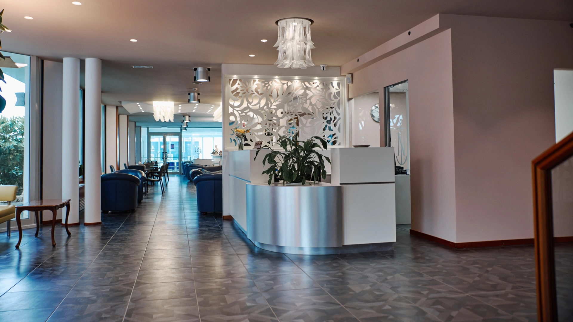 Piscina coperta e riscaldata con area bimbi, veranda, hall con Smart TV e canali Sky, quotidiani ad uso comune, sala da pranzo con vista mare, sala lettura, ascensore. A pagamento: servizio lavanderia, biciclette, late check out.