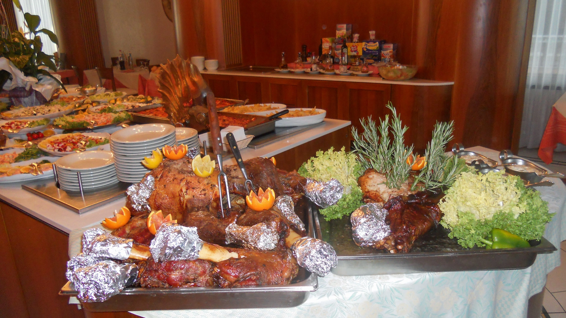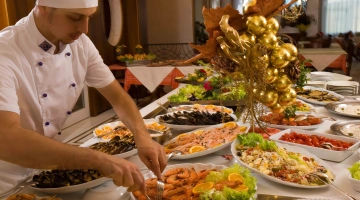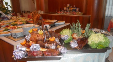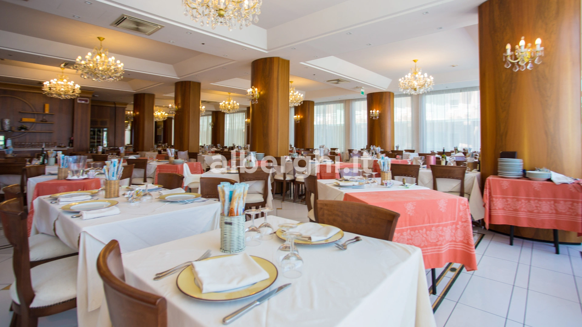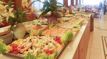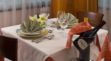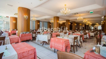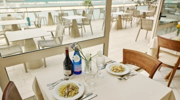 PRANZO E CENA: cucina romagnola con menù a 3 o più scelte, buffet caldo e freddo di antipasti e verdure, carta dei vini.