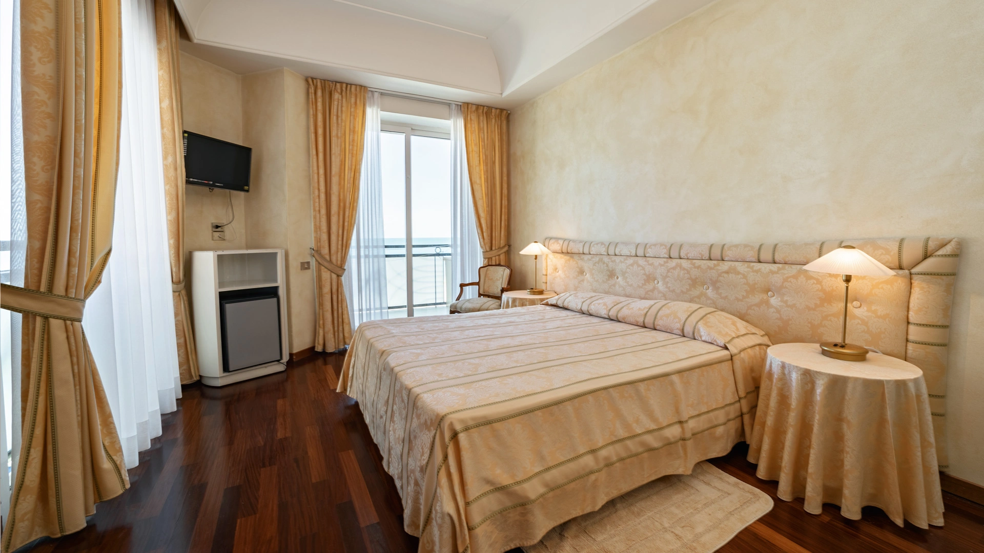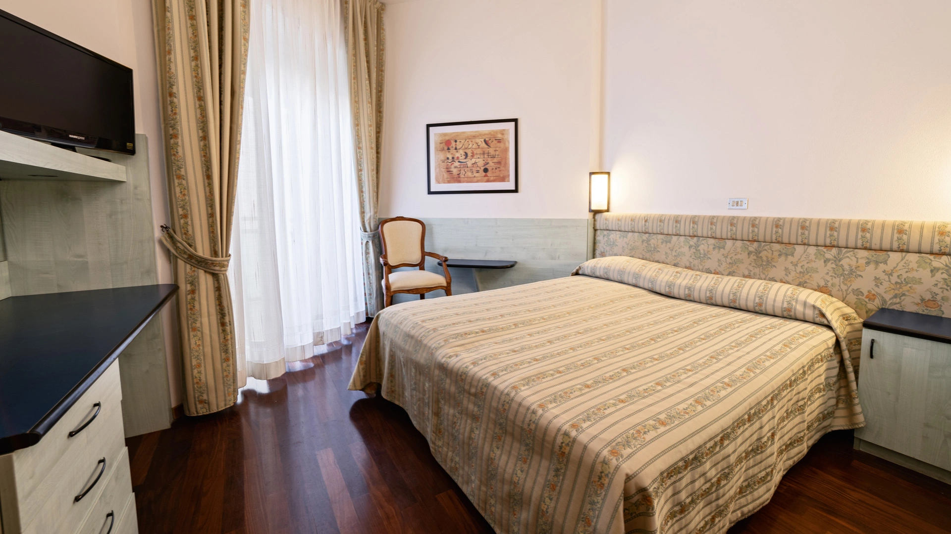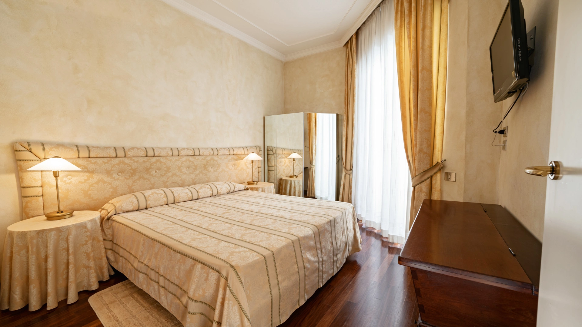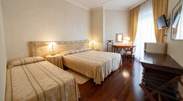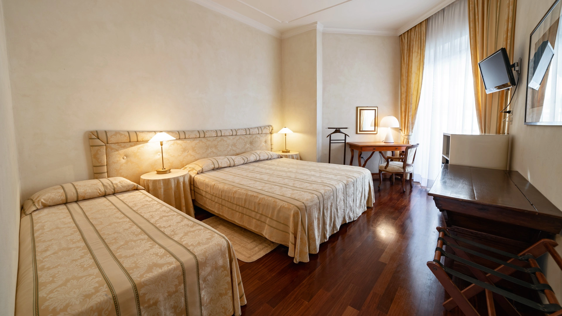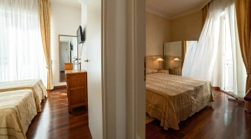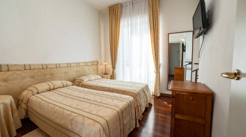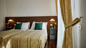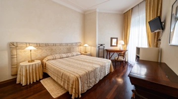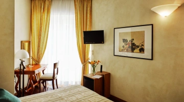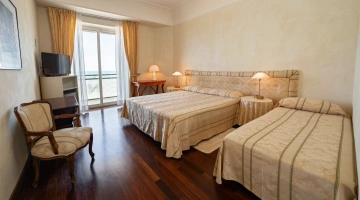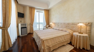 Le stanze dispongono di balcone, Wi-Fi fibra 100 Mbit/s, aria condizionata e riscaldamento, telefono, TV sat, cassetta di sicurezza, frigobar non rifornito. I bagni, completamente rinnovati nel 2020, sono dotati di box doccia e phon. Room service a pagamento.