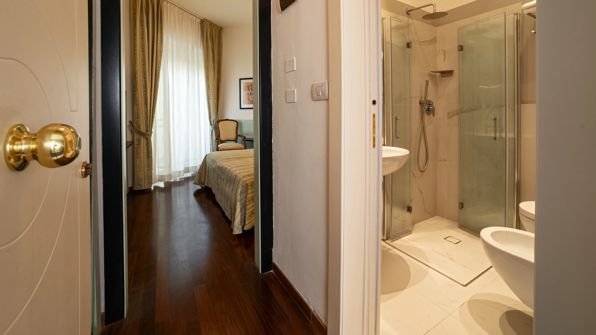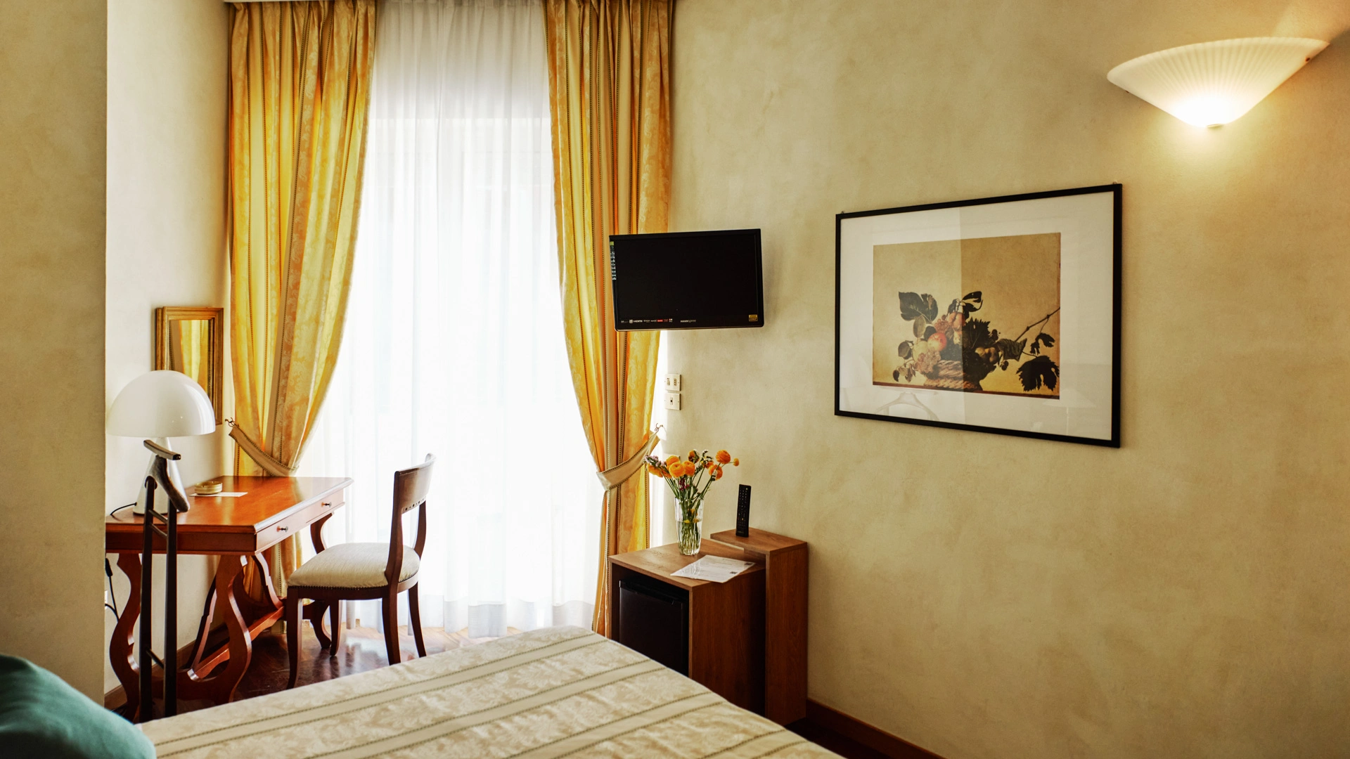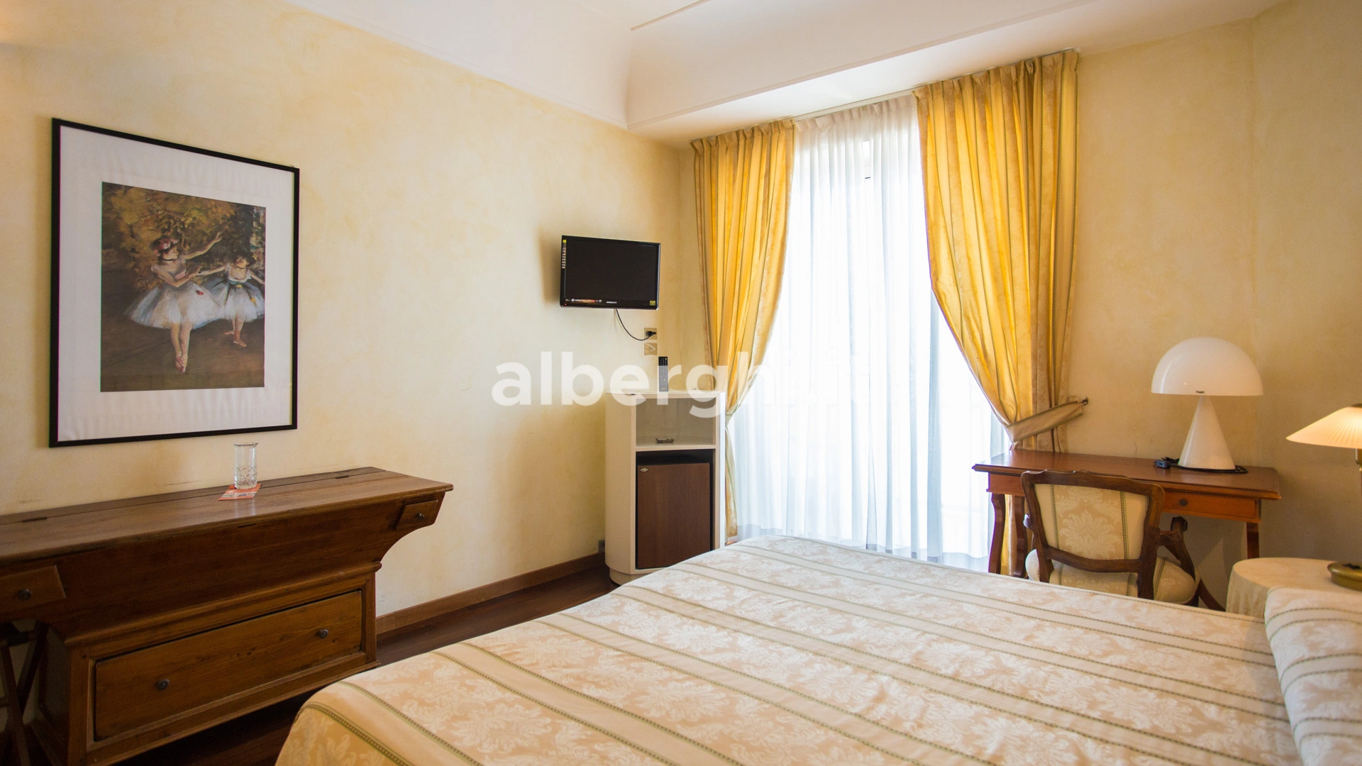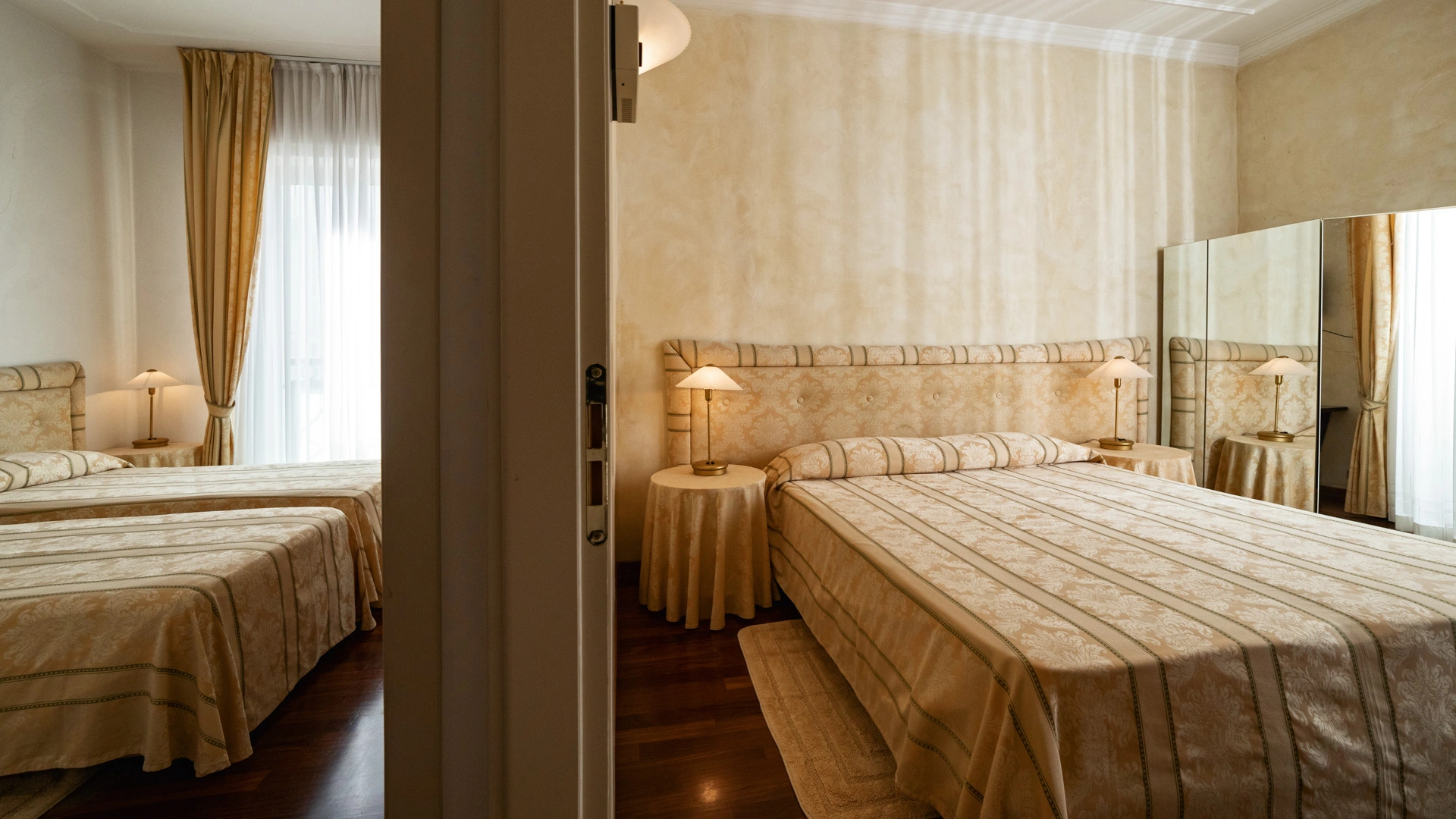 Le stanze dispongono di balcone, Wi-Fi fibra 100 Mbit/s, aria condizionata e riscaldamento, telefono, TV sat, cassetta di sicurezza, frigobar non rifornito. I bagni, completamente rinnovati nel 2020, sono dotati di box doccia e phon. Room service a pagamento.