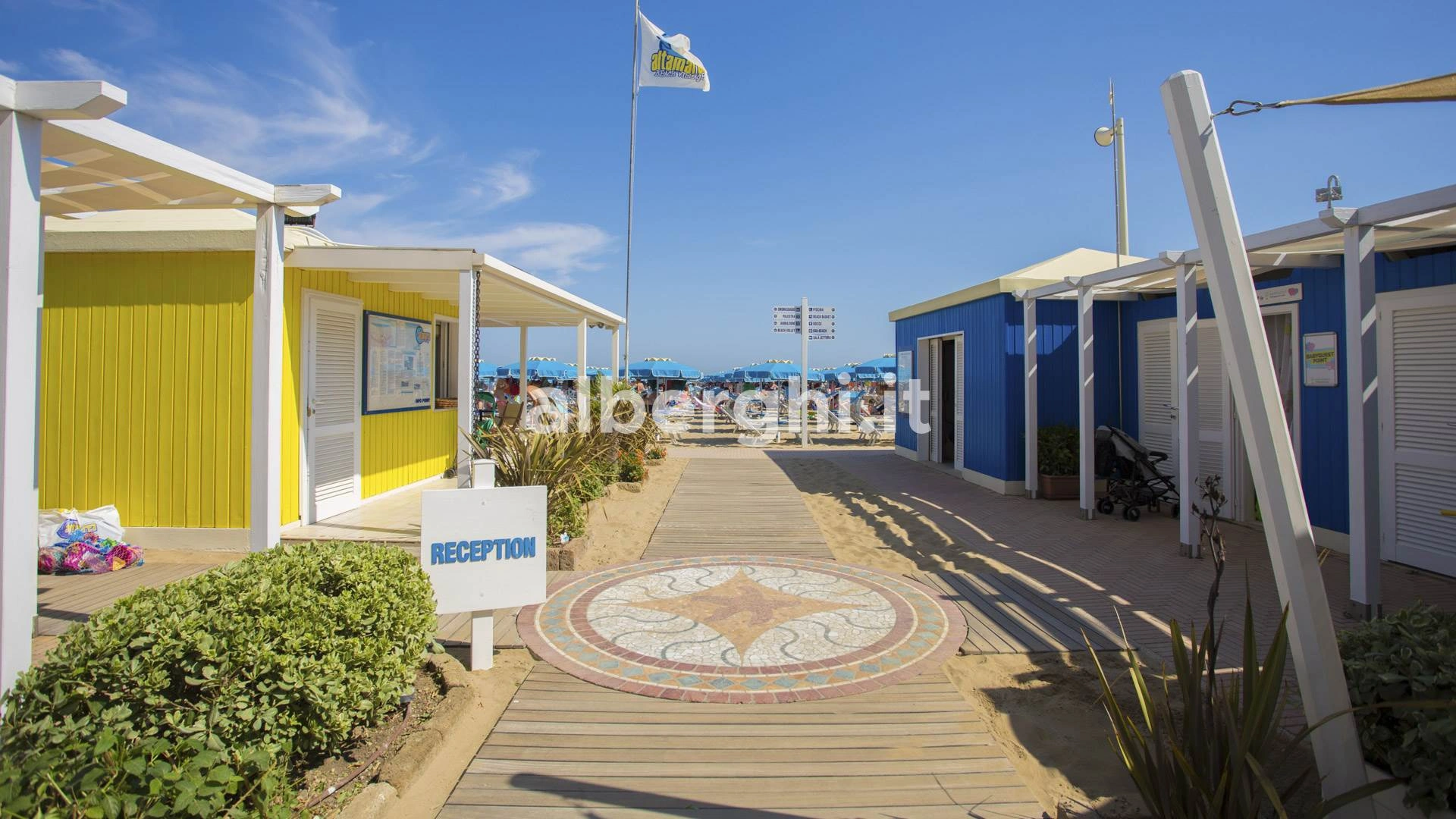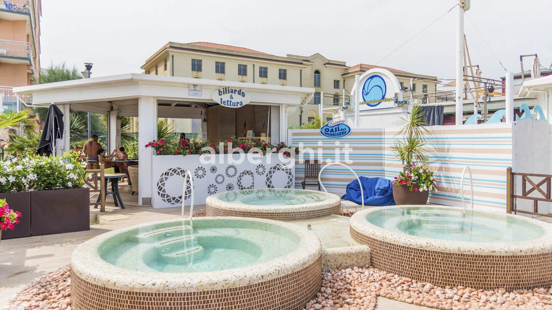 L’hotel ha accesso diretto alla spiaggia "Altamarea Beach Village" n.105, un vero e proprio villaggio turistico sulla spiaggia di Cattolica che offre molti servizi, tra cui piscine con idromassaggio, campi sportivi e animazione per adulti e bambini. È consentito l'accesso ai cani. L'Altamarea beach village è la spiaggia di riferimento ma non è convenzionata.