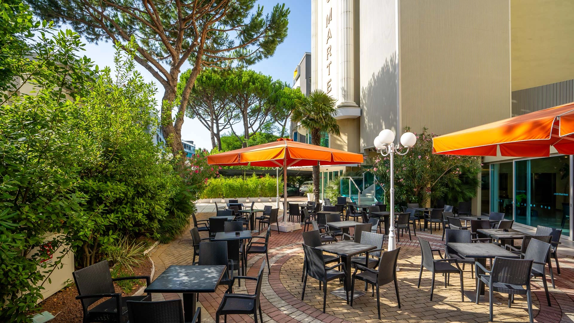 L'hotel si trova a Lido di Classe, vicinissimo alla spiaggia, da cui è separato solo da una fascia costiera di pineta senza strade da attraversare. Dista meno di 15 minuti in auto sia da Mirabilandia che dal centro di Milano Marittima.
