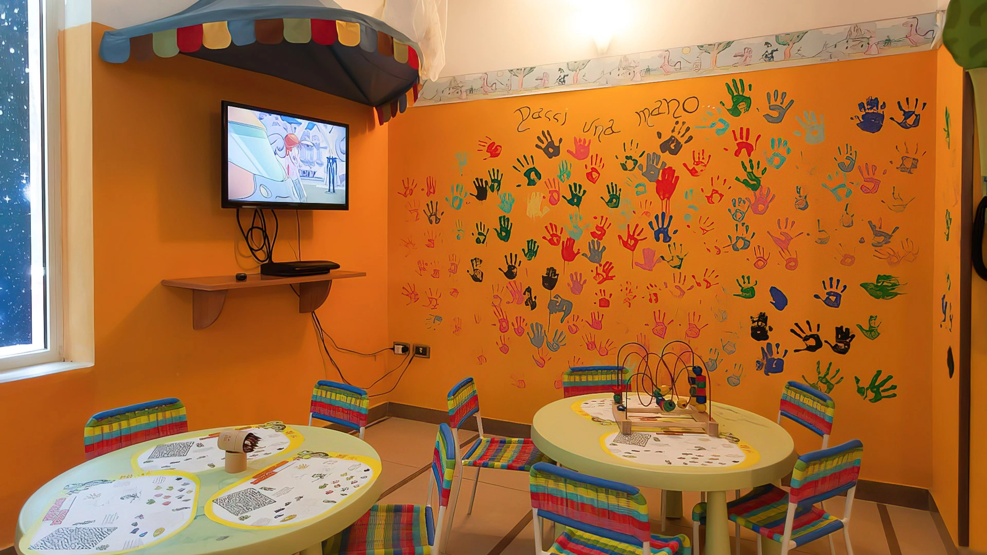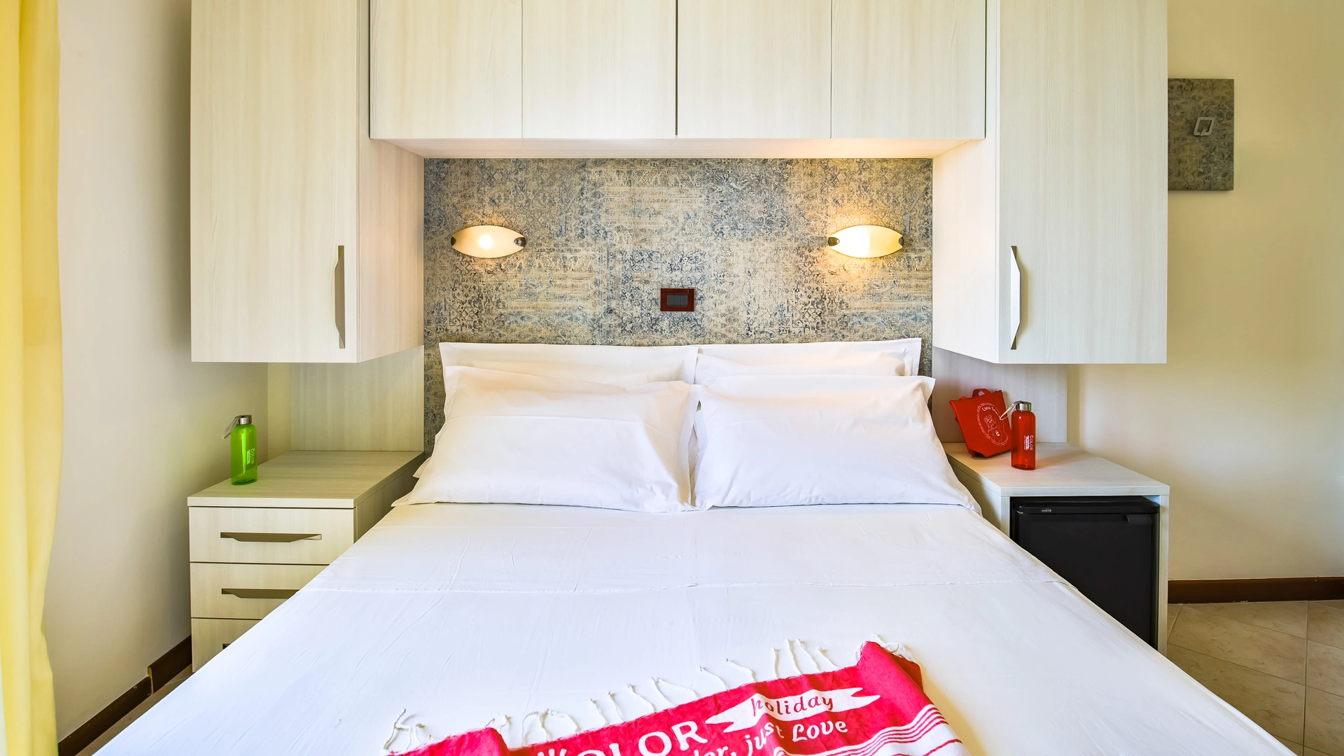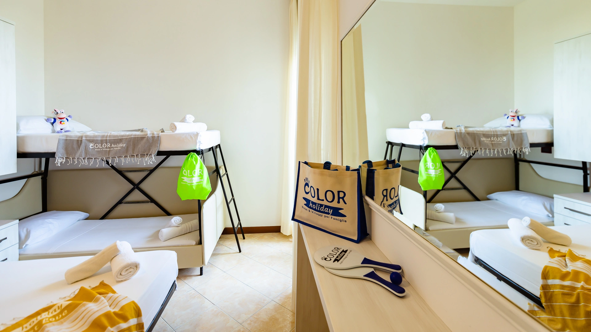 In camera: è possibile richiedere culle senza costi aggiuntivi, spondine anticaduta, lucina notturna, vaschette per il bagno e scaldabiberon.