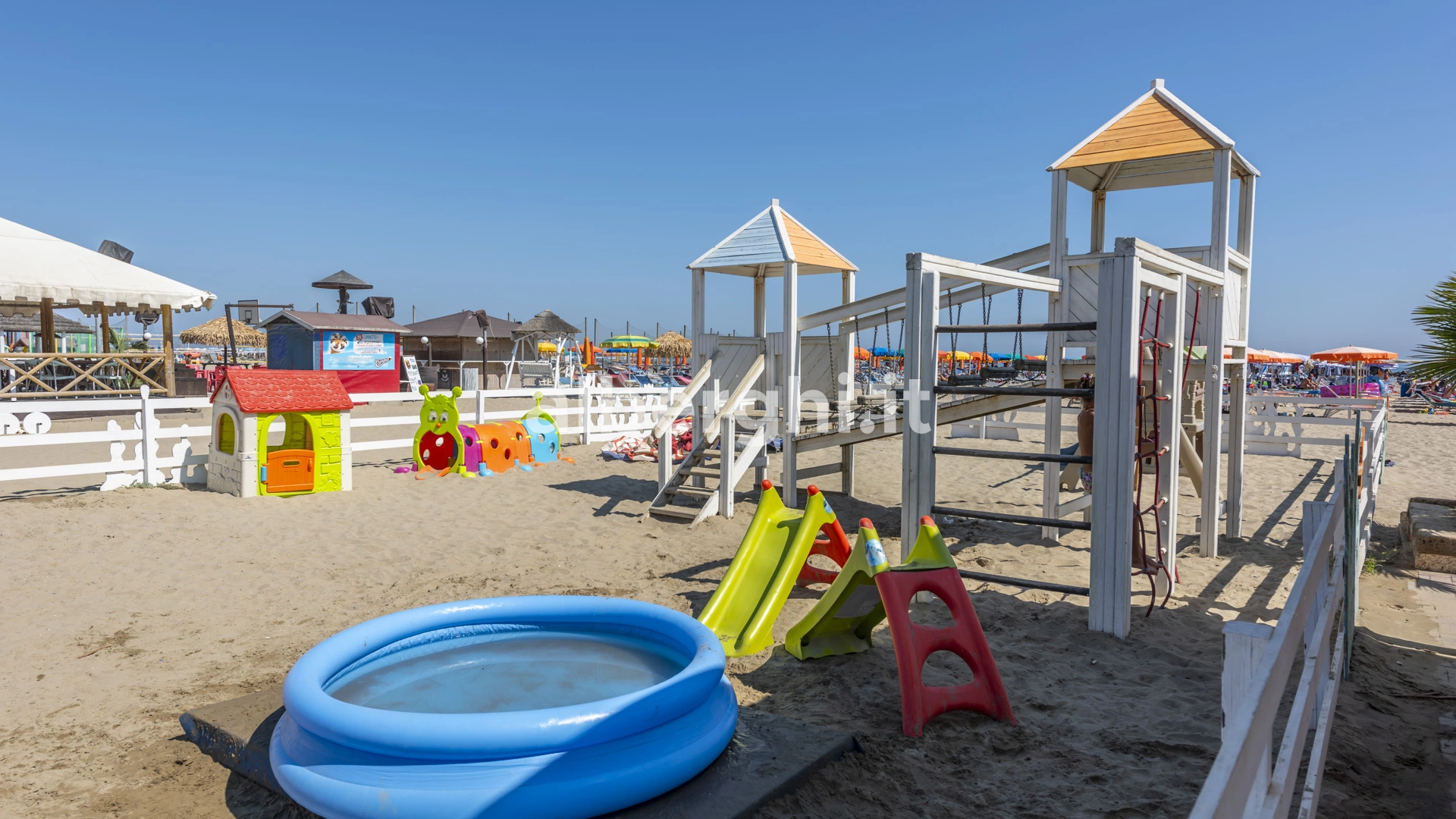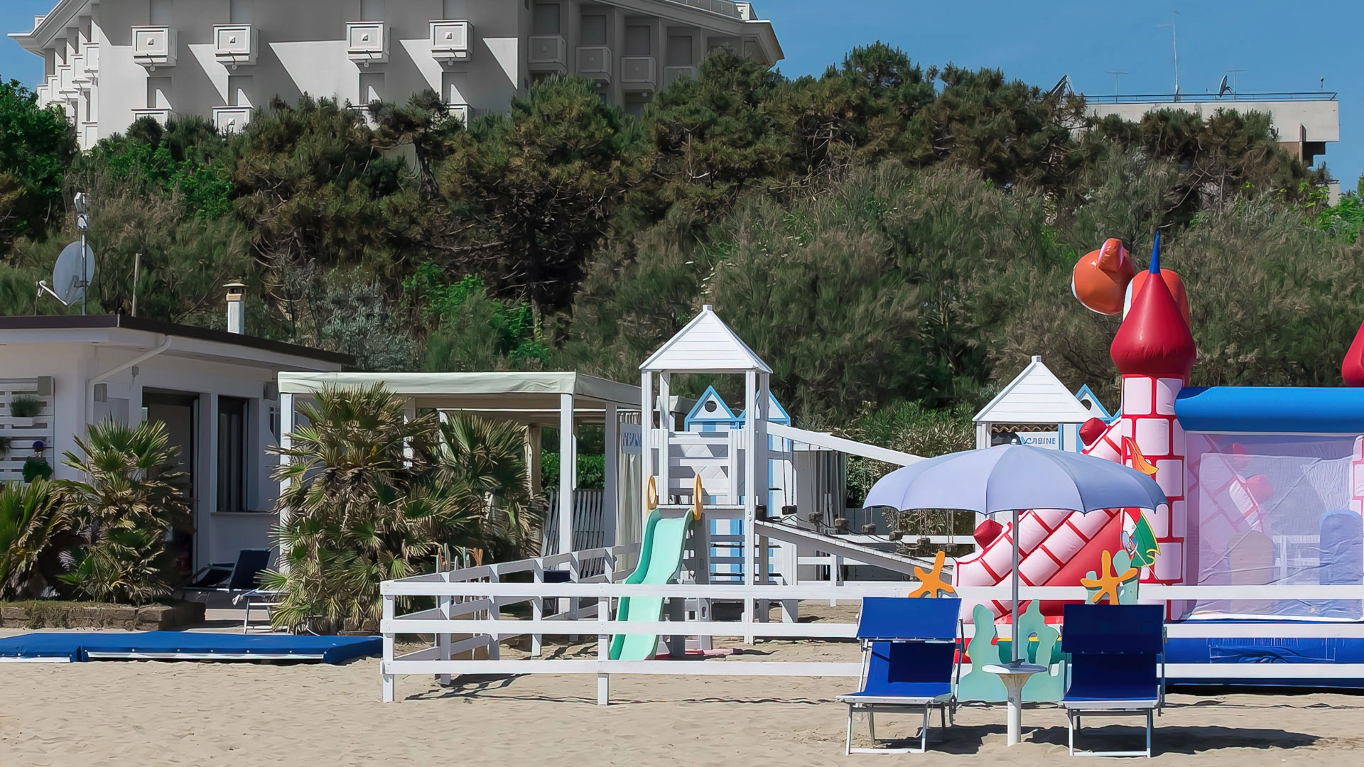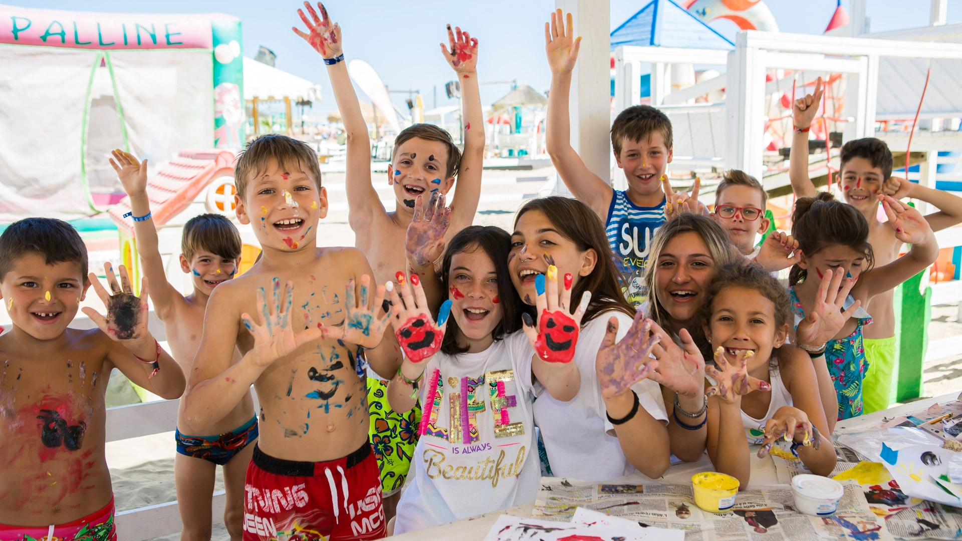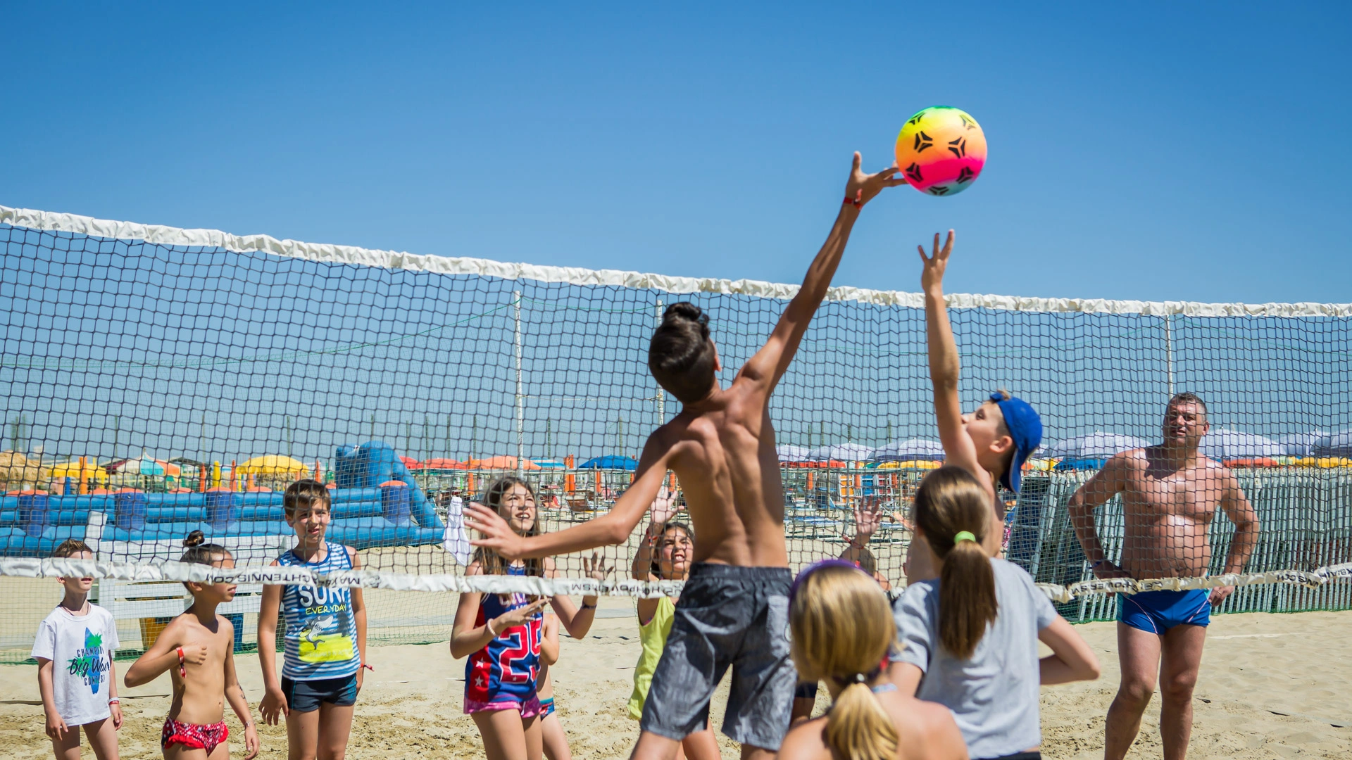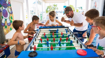 In spiaggia: area giochi in spiaggia con gonfiabili, animazione, mini piscina gonfiabile, mini club con attività e laboratori, spettacoli, sala dedicata ai video giochi.