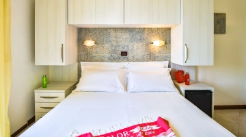 DOPPIA: 12 mq con letto matrimoniale, balcone vista pineta o mare laterale.