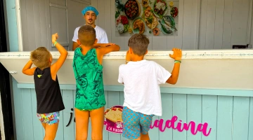 Ai pasti: menù bimbi, merenda pomeridiana. Per i neonati in fase di svezzamento è a disposizione un angolo cucina attrezzato per le mamme. I cuochi preparano quotidianamente brodini, passati di verdura, pastine, sugo al pomodoro con verdura fresca senza aggiunta di sale.