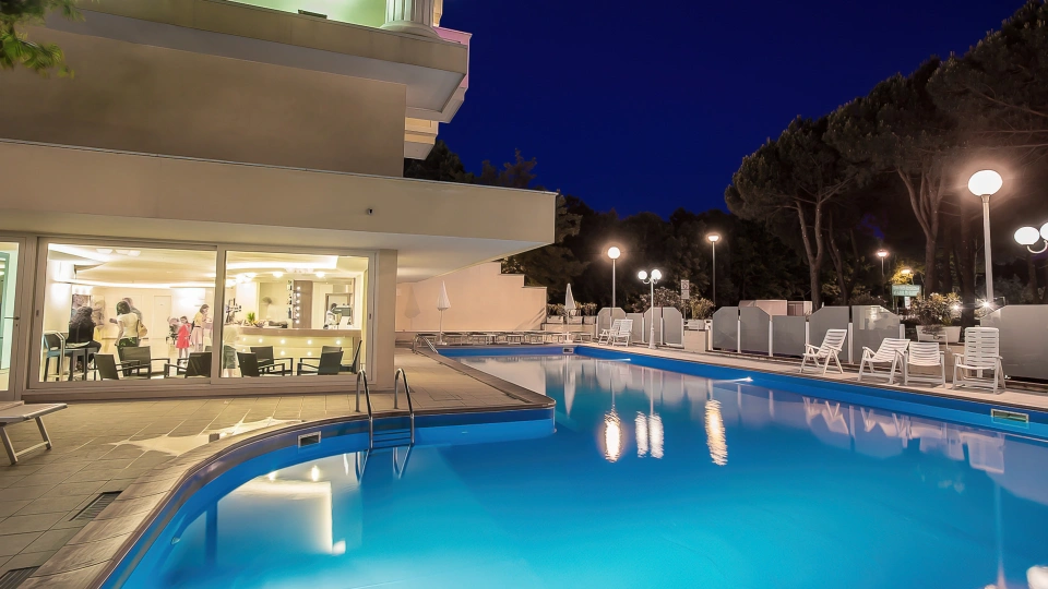 L'albergo possiede una piscina privata con area solarium, bar, lettini prendisole sorvegliata dal bagnino in orari di apertura.