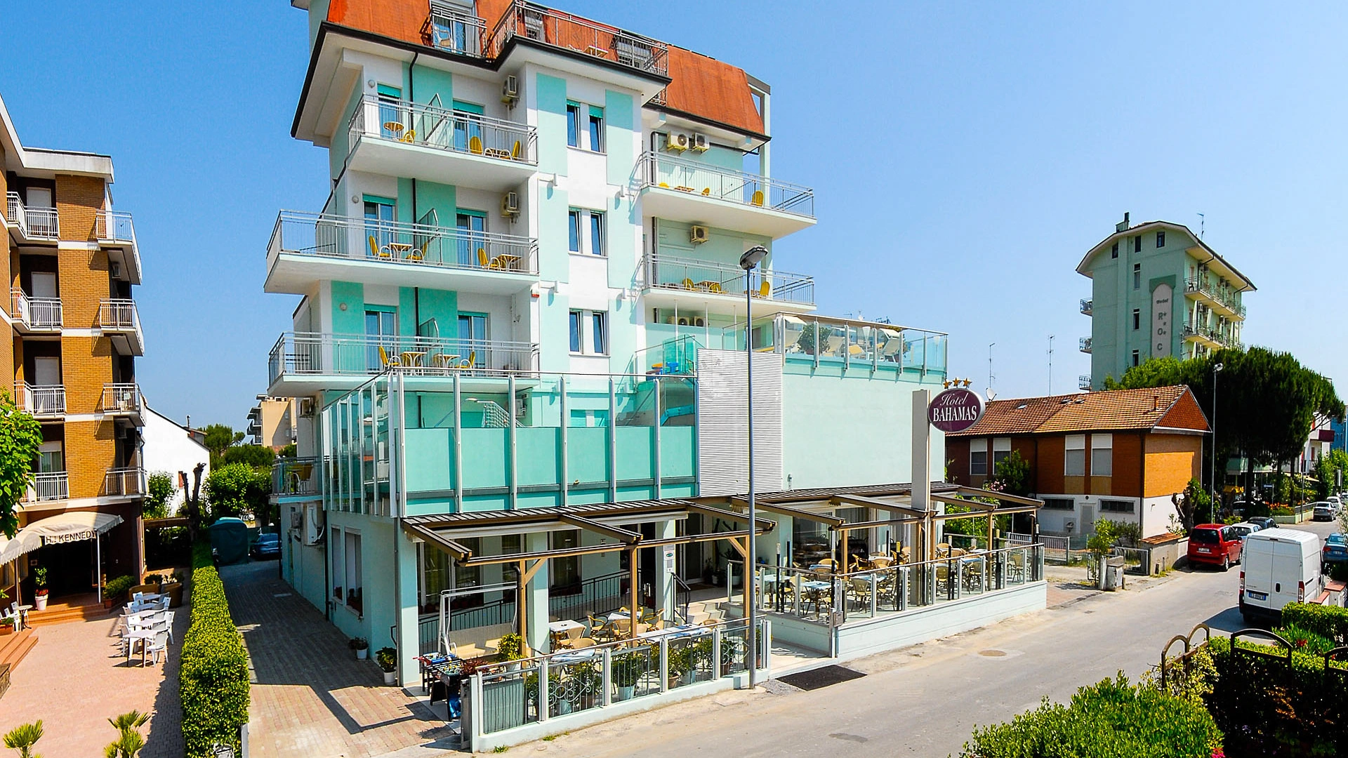 L'Hotel Residence Bahamas, 3 stelle di Lido di Savio a gestione familiare da oltre 50 anni. Ideale per le vacanze di famiglia, dispone di piscina, centro benessere, massaggi su richiesta, parcheggio fino esaurimento, Wi-Fi fibra e servizi per bambini. Si accettano animali di piccola e media taglia. La struttura dispone di appartamenti bilocali e trilocali con angolo cottura attrezzato.