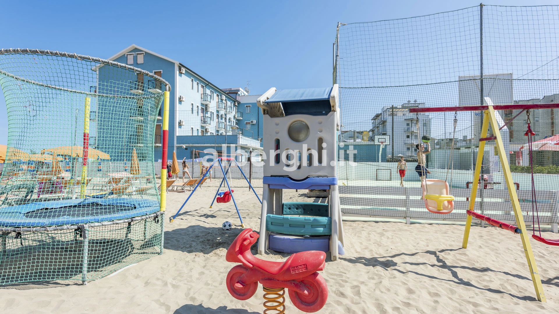 In hotel: area giochi interna, libreria per bambini (anche in lingua), biciclette anche con seggiolini e casco, passeggini e animazione Disponibili per gli appartamenti seggioloni a tavola, tovagliette e posateria colorata