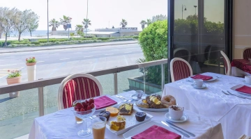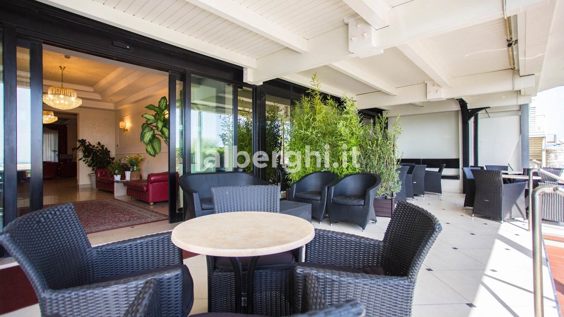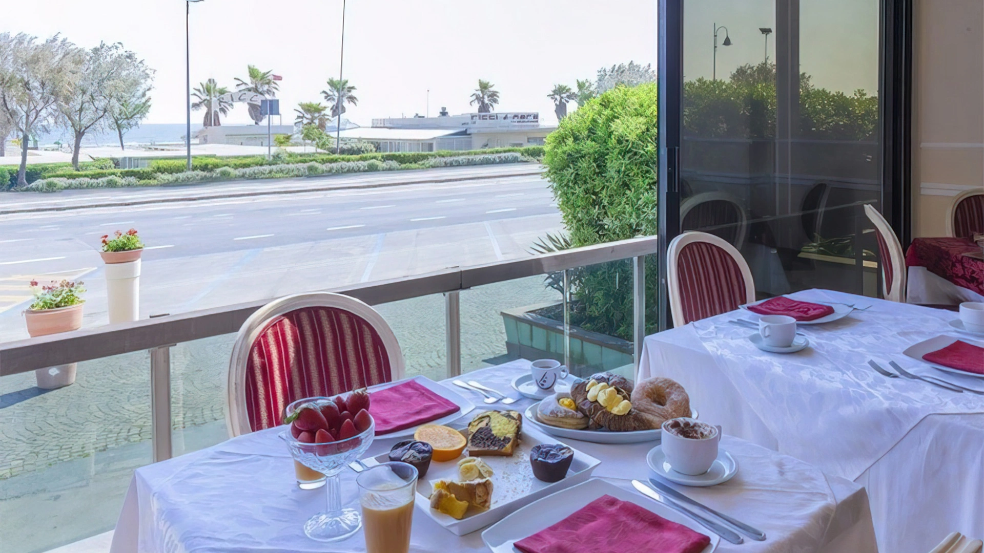 L’hotel si trova a Miramare di Rimini, proprio sul lungomare e a pochi passi dalla passeggiata principale. La frazione è ben collegata dai mezzi pubblici, con il bus di linea n. 11 si possono raggiungere comodamente sia il centro di Rimini sia Riccione. Le Terme di Rimini distano solo 10 minuti di passeggiata.