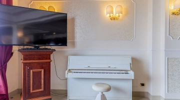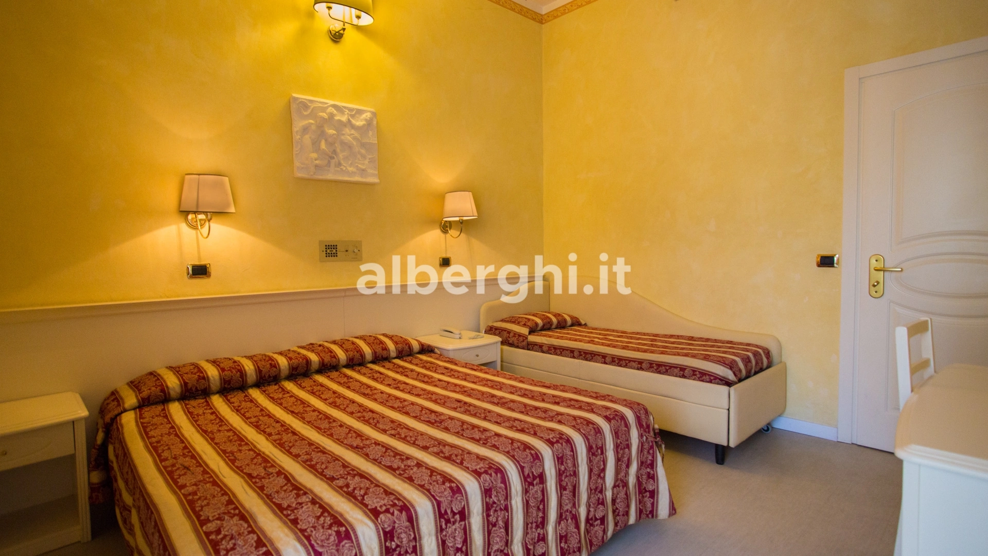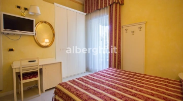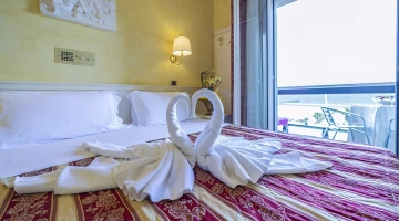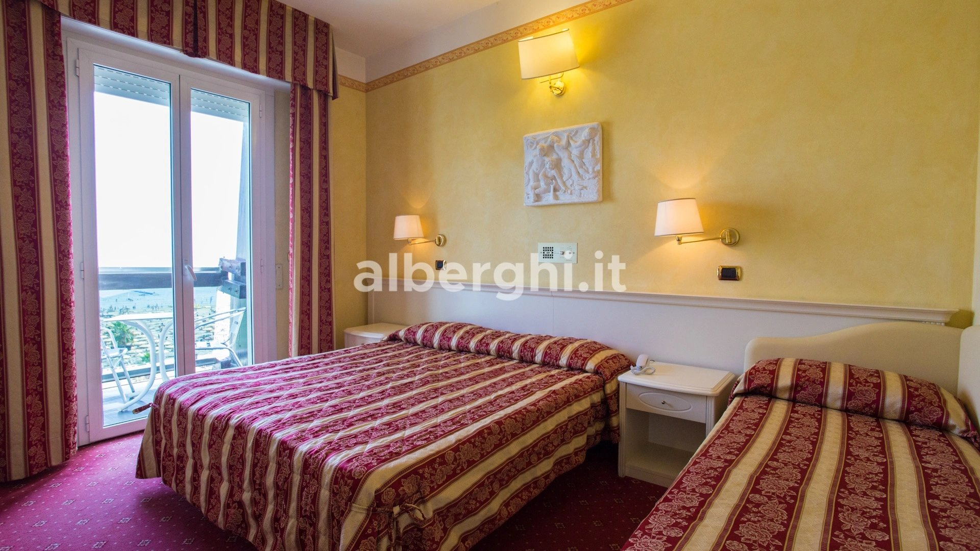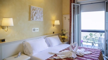 Le camere sono insonorizzate e dotate di balcone, tapparelle elettriche, porta con scheda elettronica, aria condizionata, TV LCD 26" a schermo piatto, Wi-Fi fibra 100 Mbit/s, frigobar, telefono digitale con linea esterna, sveglia automatica, cassaforte elettronica e servizi privati con asciugacapelli, box doccia e lavabi in marmo. Vista mare disponibile su richiesta.
