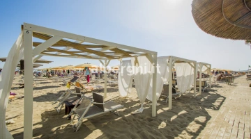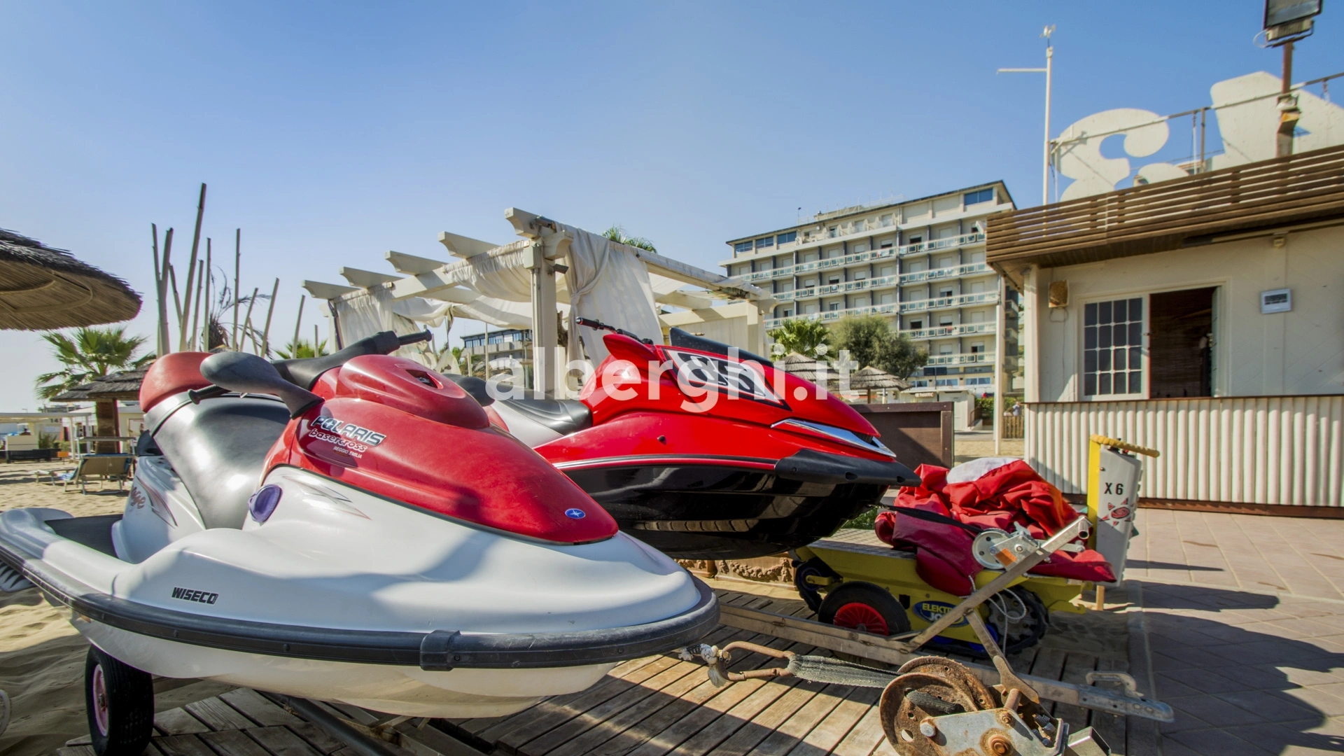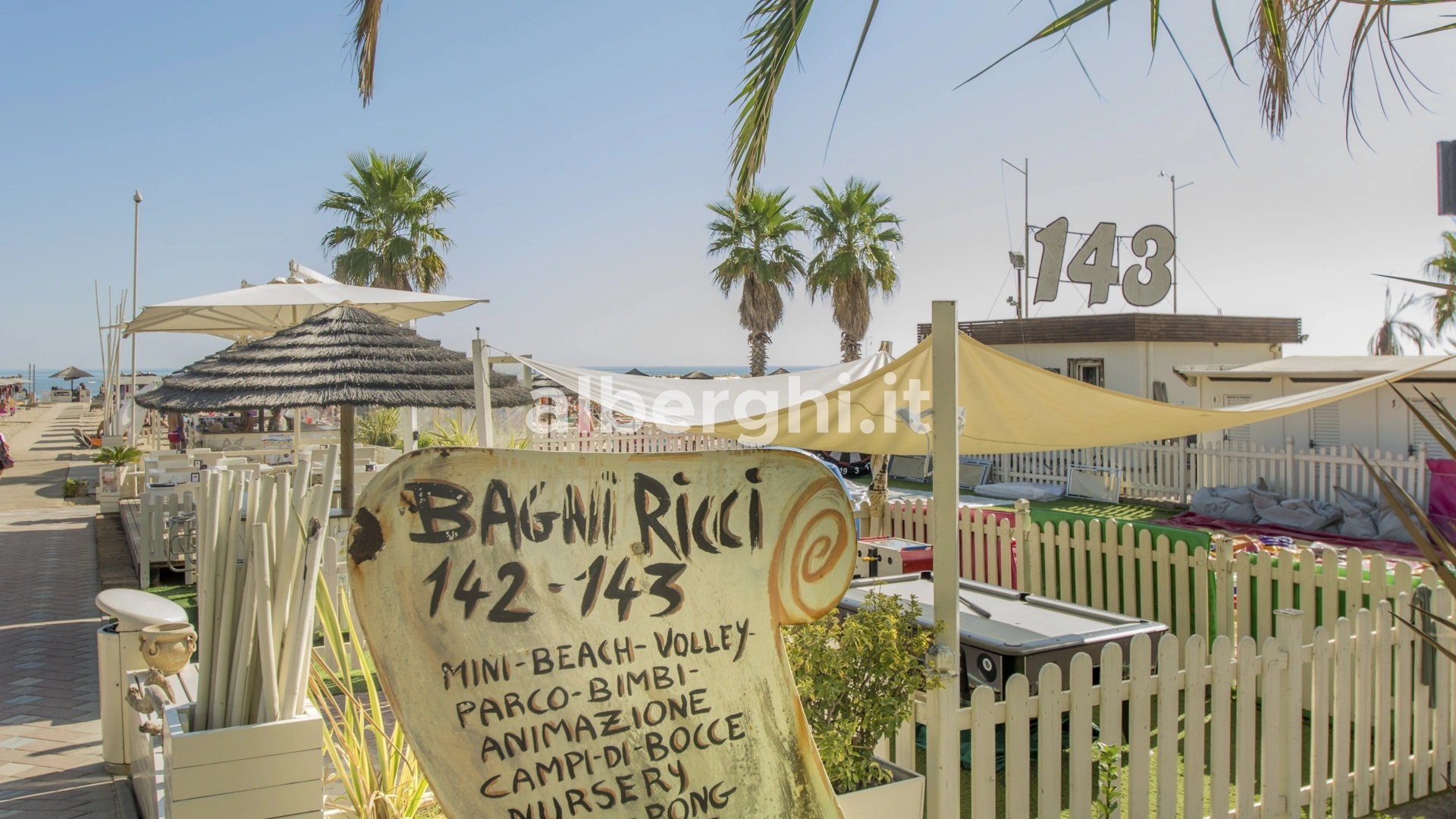Dall’albergo allo stabilimento balneare convenzionato Bagno Ricci n.142-143 ci sono solo pochi passi di distanza. A disposizione degli ospiti: ombrellone e cabina (lettini extra a pagamento), area fitness, servizio bici, campi da bocce, tavoli da ping-pong, animazione, baby park con gonfiabili e giochi per i più piccoli, zona cocktail e vasche idromassaggio.