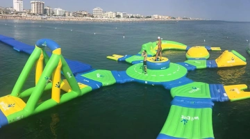 La piscina esterna ha una profondità variabile da 70 a 140 cm ed è dotata di acquascivolo e area solarium attrezzata.