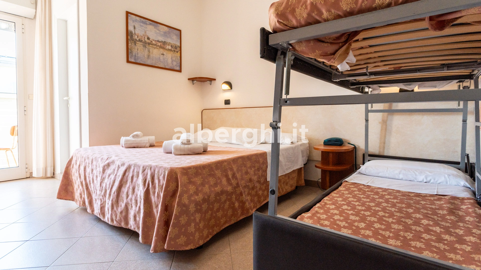 FAMILY: camere comunicanti composte da una camera con letto matrimoniale e una con letto a castello, bagno in comune, due balconi.