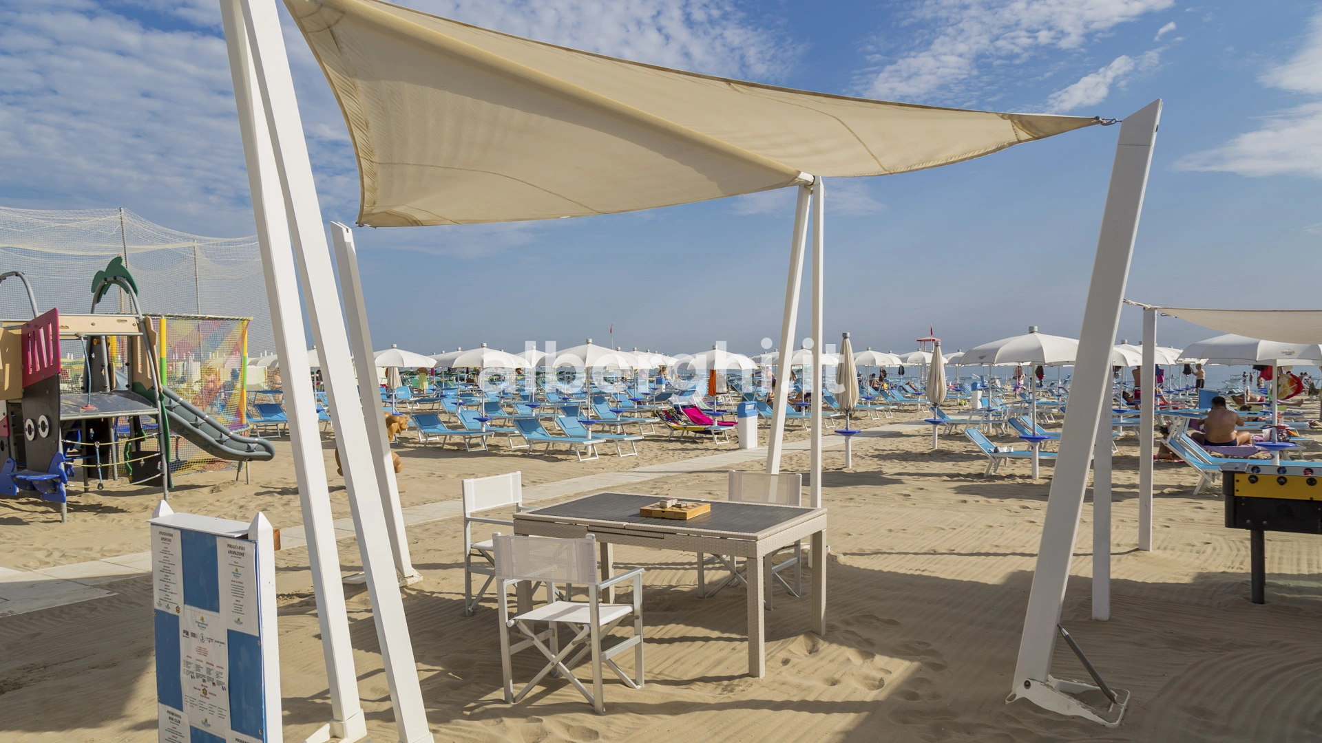 - All Inclusive: Include colazione, pranzo, cena, acqua ai pasti. Comprende anche alcune bevande ai pasti. Spiaggia: lettino, ombrellone.