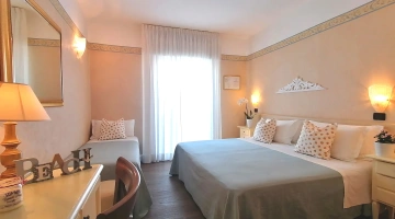 Non fumatori con balcone vista mare laterale, pavimenti in marmo oppure parquet, aria condizionata, riscaldamento, TV sat al plasma, digitale terrestre, canali Sky gratuiti, telefono, Wi-Fi veloce, cassaforte elettronica, servizi privati con set di cortesia e box doccia, phon, frigobar. Possibilità di colazione in camera su richiesta.