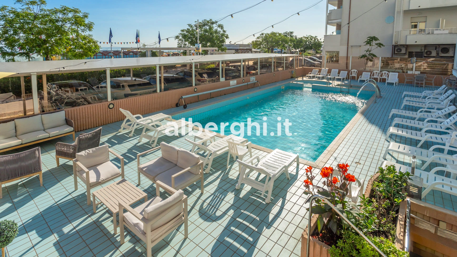 La struttura si trova a Riccione, sul mare e dista una quindicina di minuti a piedi da Viale Ceccarini e dal Palacongressi.