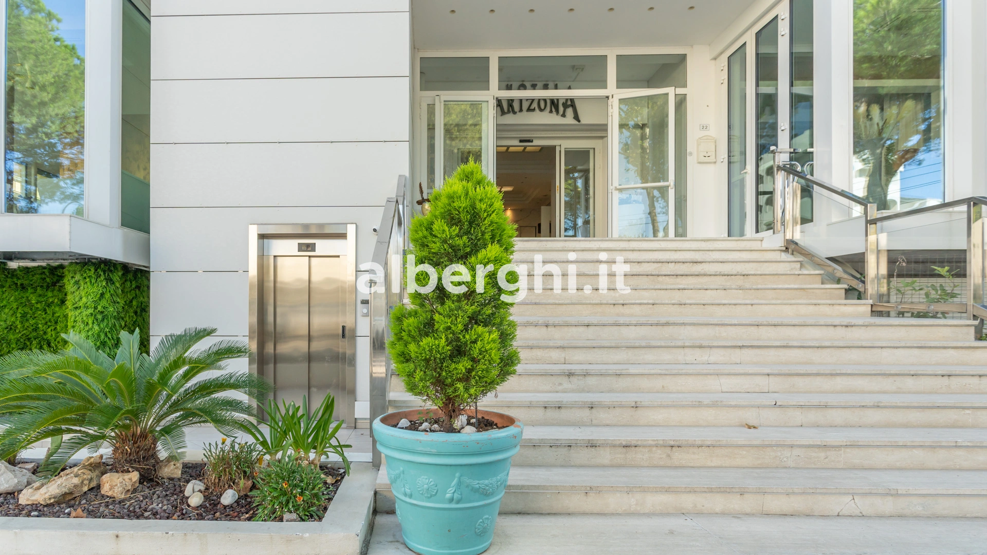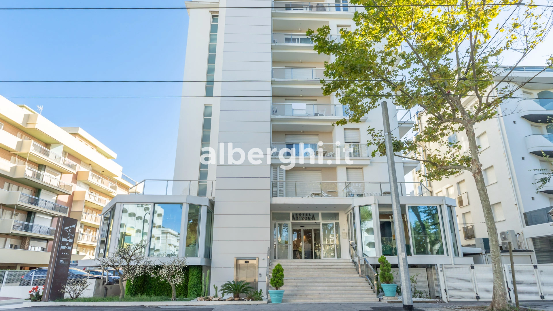 L'Hotel Arizona è un tre stelle direttamente sul mare a Riccione. Adatto per famiglie con bambini ai quali sono dedicati numerosi servizi tra cui animazione e spazio giochi interno. Propone 4 sale meeting per i soggiorni di lavoro ed è attrezzato per ciclisti. Piscina, idromassaggio e Wi-Fi presenti. Ammessi animali di piccola e media taglia.