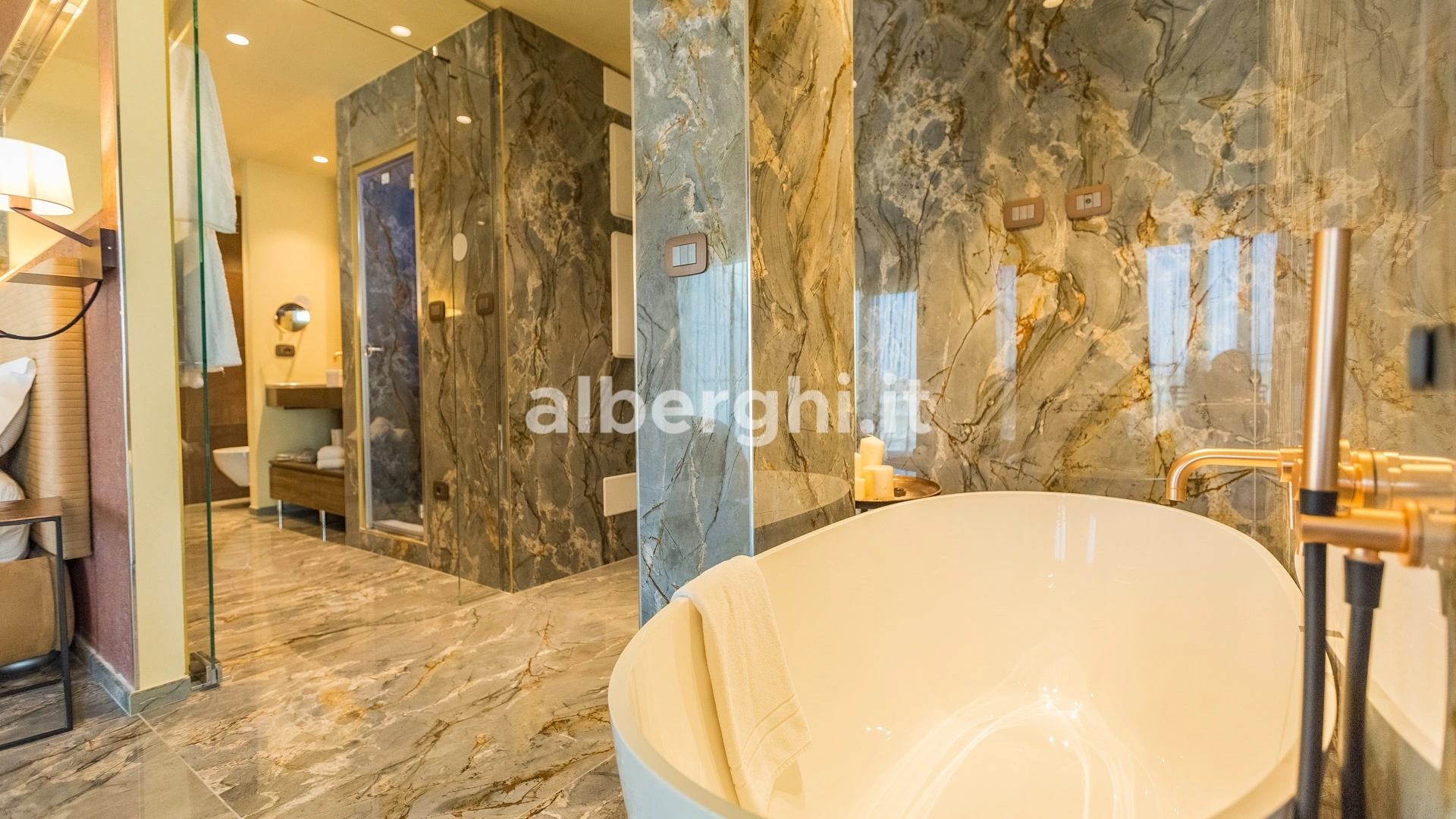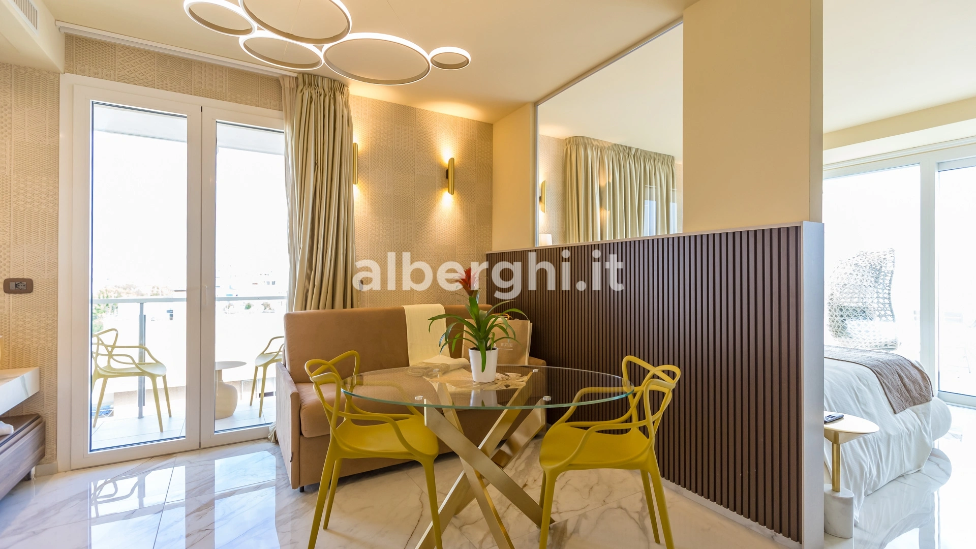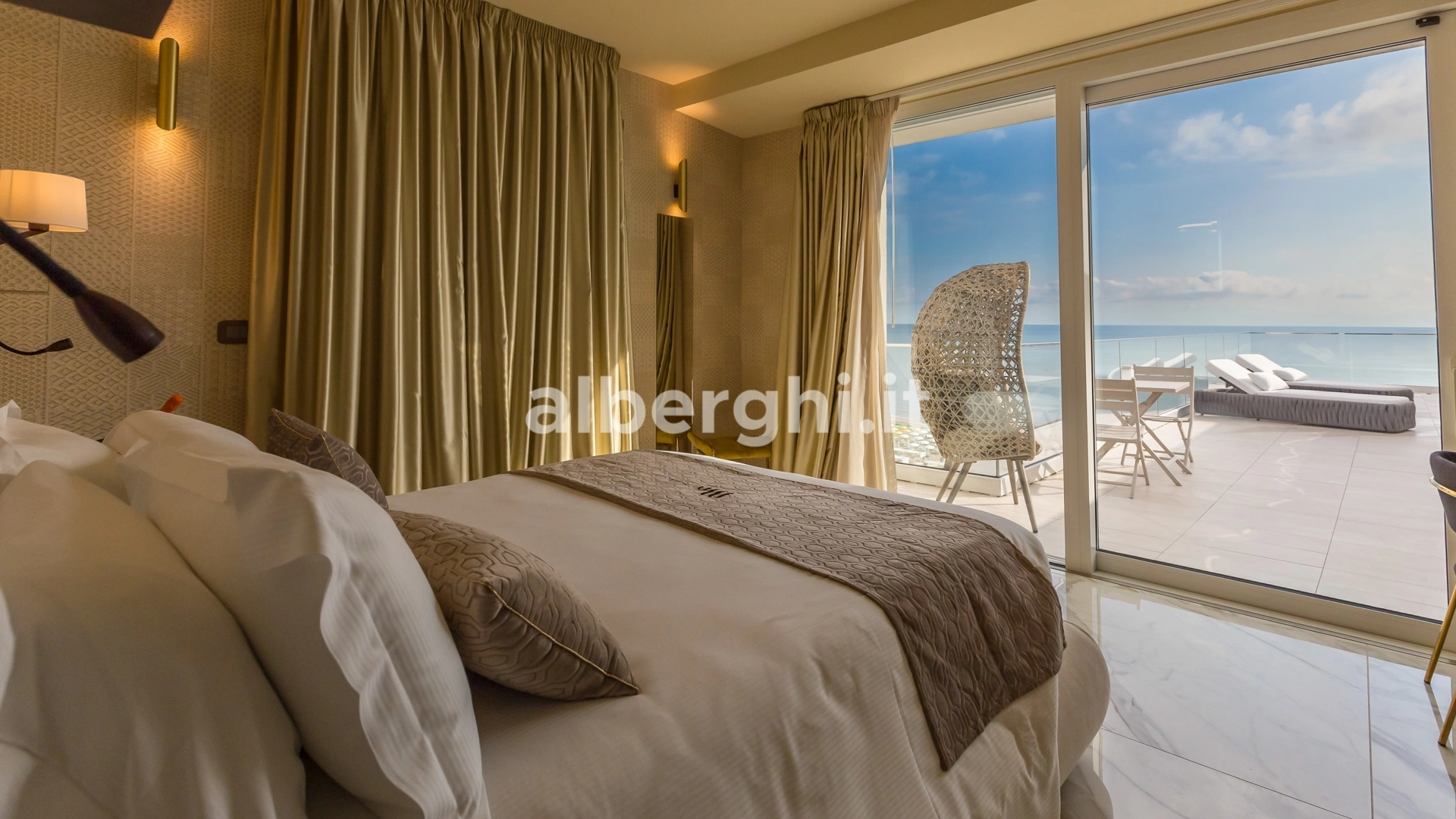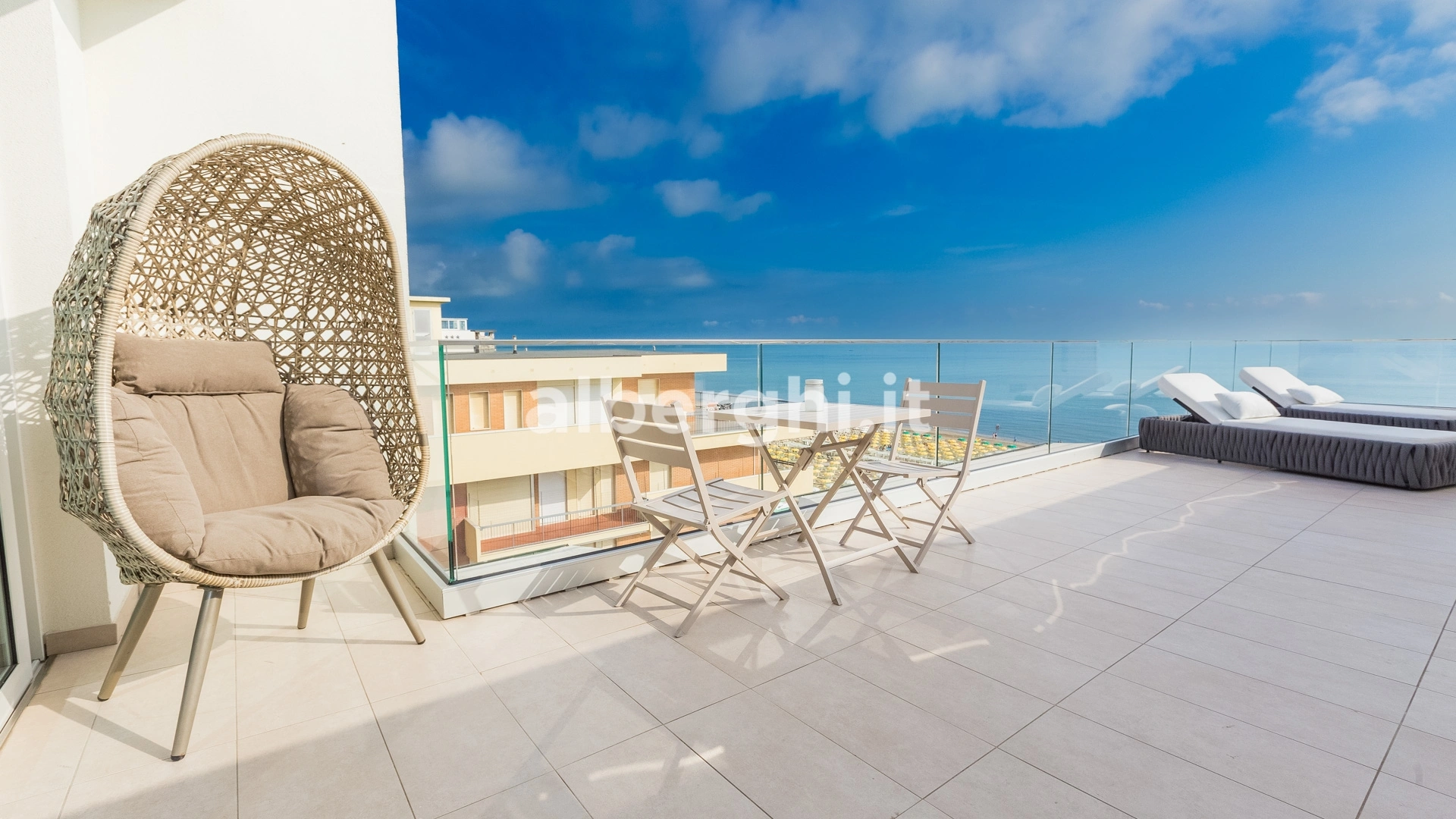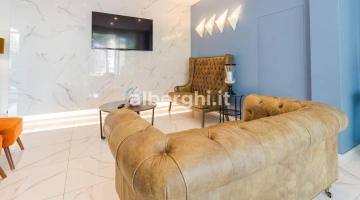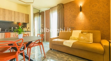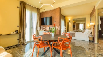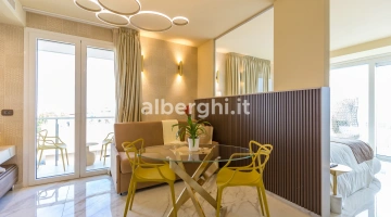 ALE SUITE: al sesto piano sono presenti 4 suite di ampia metratura (da 35 mq a 70 mq), 25 mq di terrazza vista mare attrezzata con lettini prendisole, zona living con mini cucina, divano letto a due posti, letto matrimoniale, ampio bagno con doccia, bollitore, tostapane,macchina del caffè. Sono disponibili anche comunicanti.