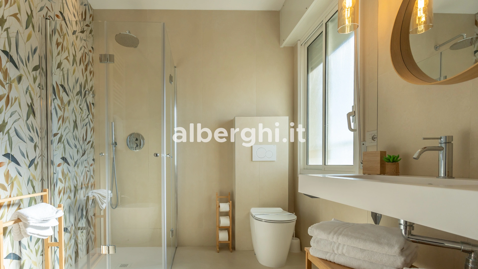 Climatizzatore e riscaldamento, letti sommier ortopedici, TV LCD sat, Wi-Fi, minifrigo, cassaforte, telefono, asciugacapelli, bagno privato con box doccia o vasca idromassaggio con doccia, set di cortesia. Le camere sono per non fumatori.