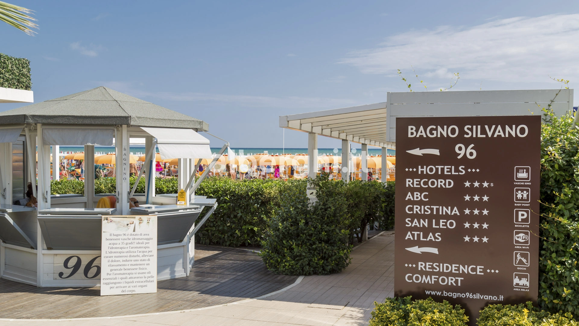 L'Hotel Arizona è convenzionato con il Bagno, n.96, stabilimento balneare attrezzato con lettini, ombrelloni, campi sportivi sulla sabbia, giochi, animazione per adulti e bambini.