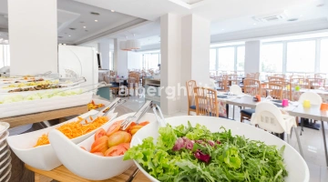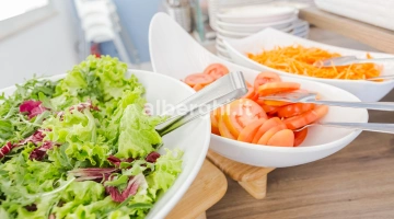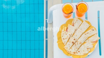 PRANZO E CENA: a buffet (con possibilità di richiedere servizio al tavolo) nelle due sale da pranzo, con pietanze a base di carne, pesce e verdure. Ricette della tradizione accostate a rivisitazioni a cura dello chef, sempre con l'impiego di ingredienti genuini. Al termine del pasto dessert e torte fatte in casa.